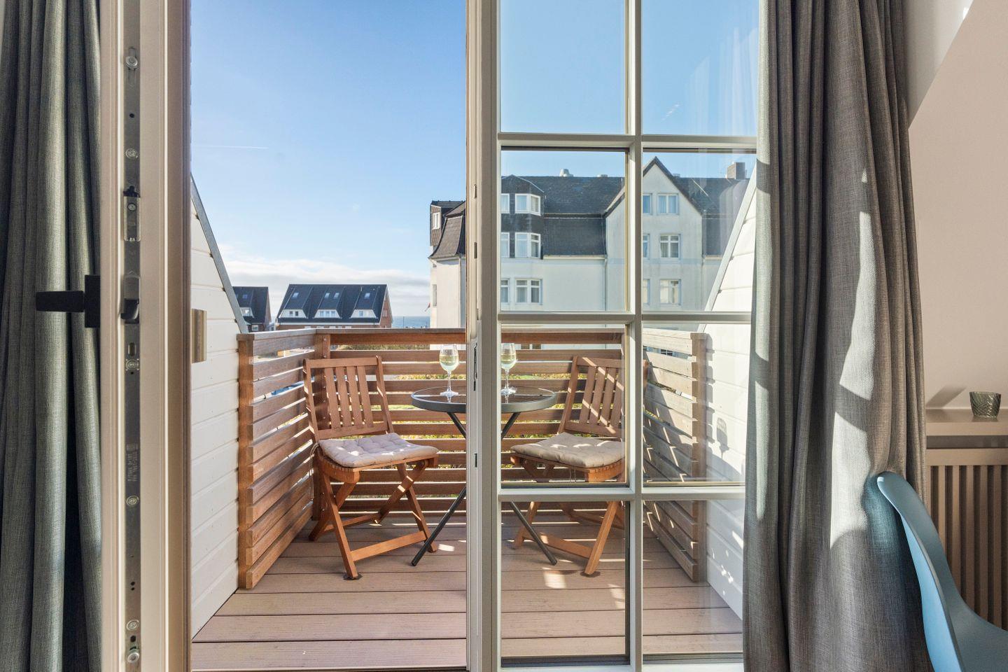 Der möblierte Balkon in Westausrichtung ist ein echtes Highlight. Beobachten Sie das Meer in der Ferne, lassen Sie sich von der salzigen Brise umhüllen und erleben Sie unvergessliche Sonnenuntergänge bei einem Glas Wein – ganz bequem vom eigenen Logenplatz aus.