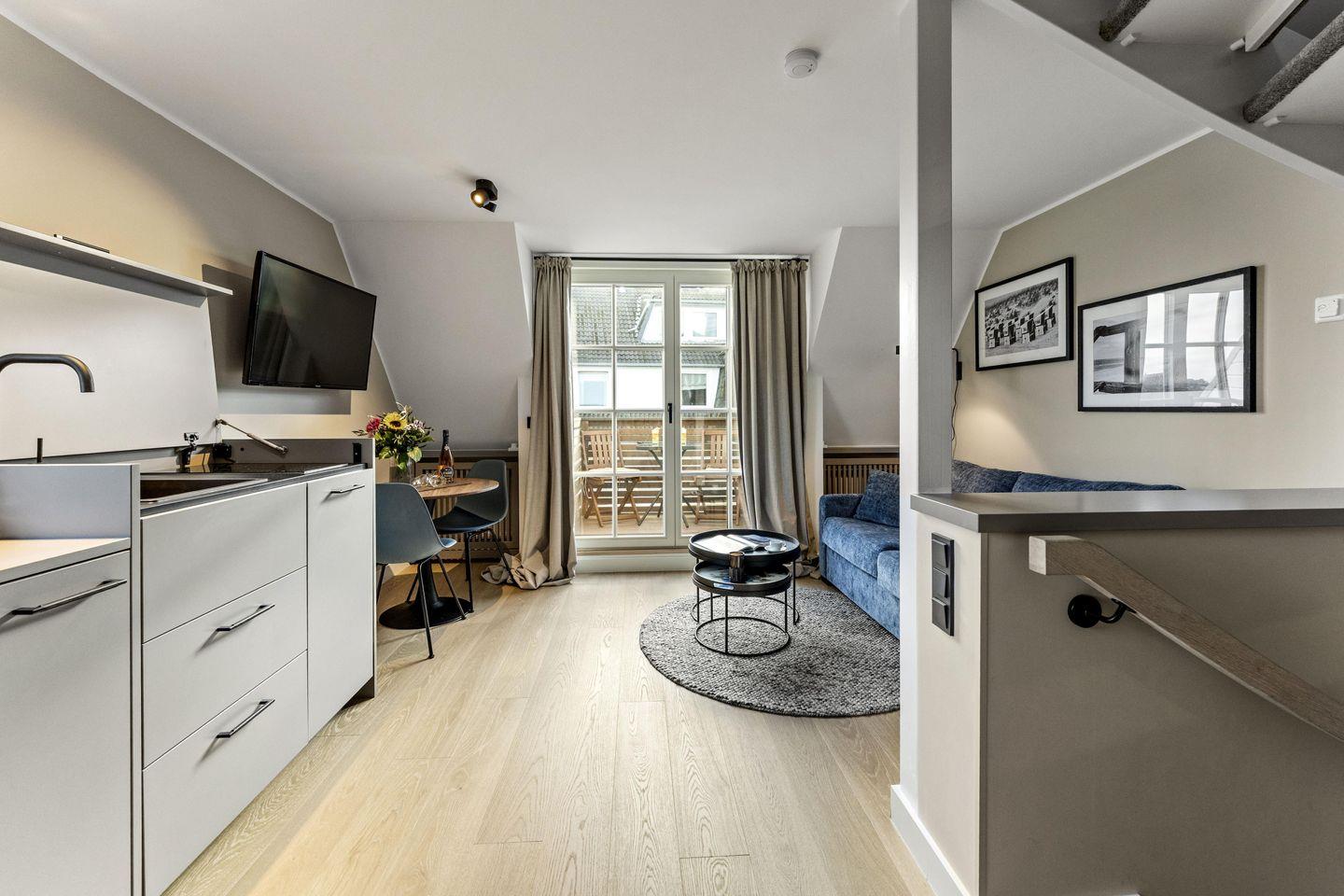 Diese charmante Ferienwohnung auf zwei Ebenen ist der ideale Rückzugsort für Paare oder Alleinreisende, die Sylt in vollen Zügen genießen möchten. Mit stilvollem, urbanem Design und durchdachter Ausstattung bietet sie auf ca. 55 qm alles, was das Urlaubsherz begehrt – inklusive Balkon mit seitlichem Meerblick und fußläufiger Nähe zum Strand.