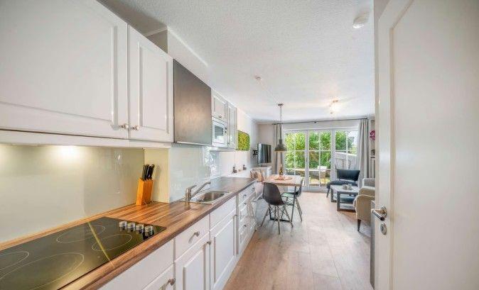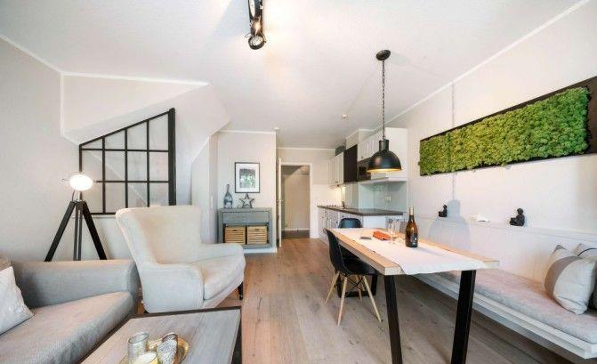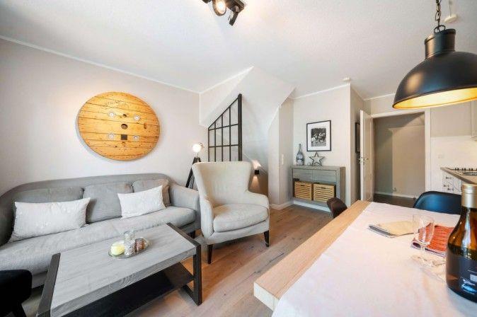 Auf zwei Etagen und rund 60 m² bietet das Küstennest ein hochwertiges Zuhause für bis zu vier Personen. Der helle Wohnbereich mit gemütlicher Sofaecke und Sessel lädt zu entspannten Stunden ein. Eine offene, gut ausgestattete Küche mit angrenzendem Essbereich bietet alles, was Sie für gemeinsame Mahlzeiten benötigen – funktional, stilvoll und harmonisch ins Wohnkonzept eingebettet. WLAN steht selbstverständlich zur Verfügung.