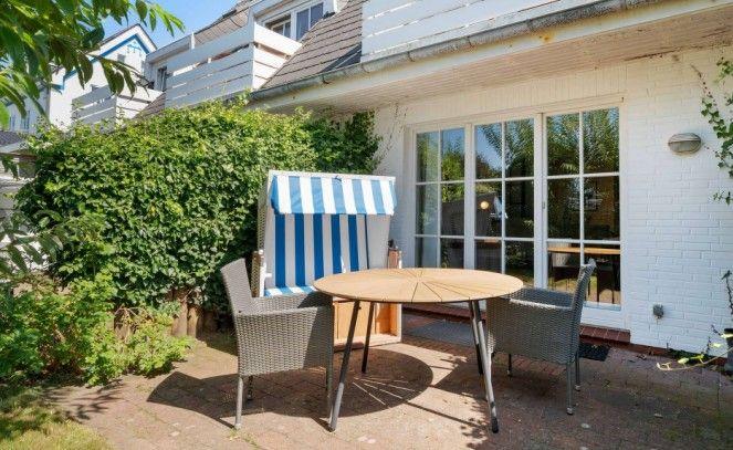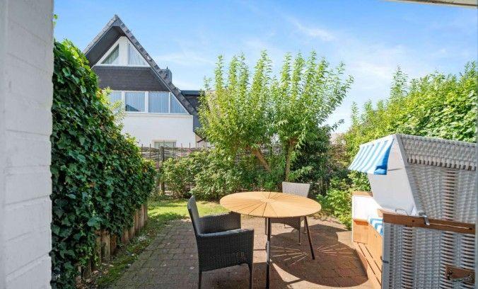 Eine kleine Terrasse mit Sitzmöbeln und Strandkorb rundet das Angebot ab und lädt dazu ein, zwischendurch die frische Nordseeluft zu genießen oder den Tag entspannt ausklingen zu lassen. Ein eigener Parkplatz direkt am Haus sorgt für zusätzlichen Komfort.