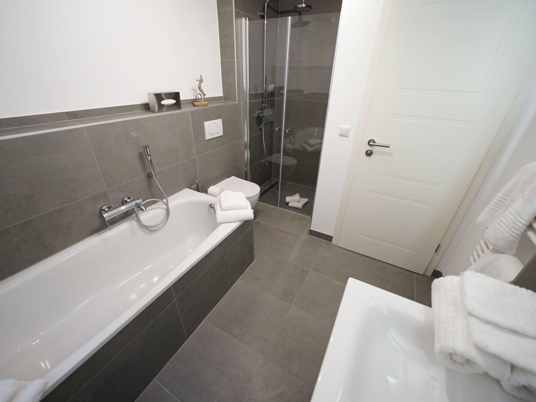 The interior of the flat leaves nothing to be desired. A washing machine and tumble dryer are available for communal use in the building, which is particularly practical for longer stays. The kitchen boasts a ceramic hob, a coffee machine for pods as well as a kettle and a dishwasher, so you are well equipped to prepare delicious meals for yourself and your loved ones. The living area includes cosy seating, a sofa bed, a TV and a CD player to guarantee relaxing evenings.