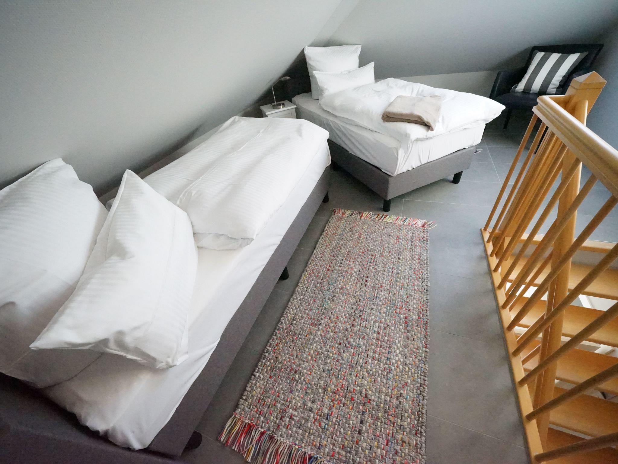 The flat is fully equipped to make your stay as pleasant as possible. A pod coffee machine, a kettle and a ceramic hob are waiting to serve your culinary experiments. Dishes can be cleaned quickly thanks to the dishwasher. Entertainment is also provided with a TV, CD player and WLAN internet access. Not forgetting the shared use of the washing machine and tumble dryer in the building, which increases the comfort of a long stay.