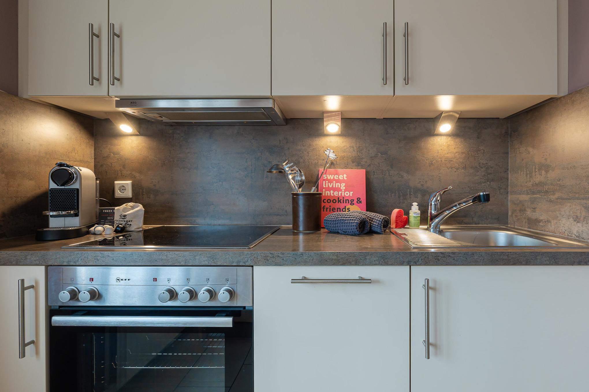Einladend öffnet sich die geräumige Diele und geleitet Sie in ein modernes Duschbad, das bei Tageslicht erstrahlt und mit zwei stilvollen Waschbecken ausgestattet ist. Das Schlafzimmer beeindruckt mit einem großzügigen Einbauschrank und einem kuscheligen Schramm - Boxspringbett samt TV, das für süße Träume sorgt. Der lichtdurchflutete Wohn-Essbereich begeistert mit einer offenen Küche und Designklassikern von unter anderem Carl Hansen. Im Wohn-Essbereich lassen sich gesellige Stunden verbringen, das Wohnzimmer kann durch ein Schiebetürelement bei Bedarf in ein behagliches Refugium verwandelt werden. Nutzen Sie das hochwertige Schlafsofa und gestalten Sie das Wohnzimmer nach Ihren Wünschen – vielleicht als separates zweites Schlafzimmer? Die offene Küche ist mit exquisiten Markenprodukten wie Miele und Nespresso ausgestattet, um Ihnen ein entspanntes Kocherlebnis zu bieten.