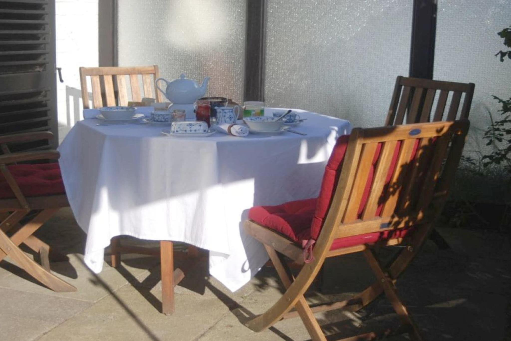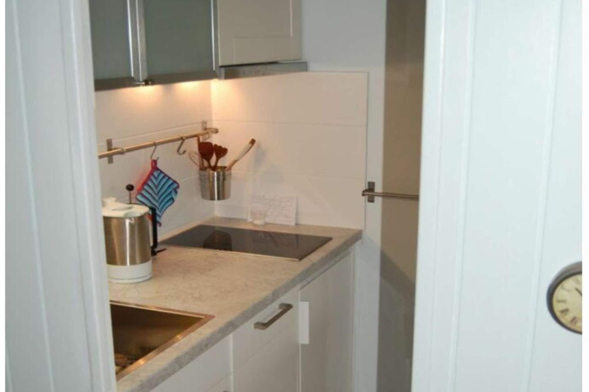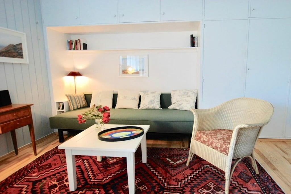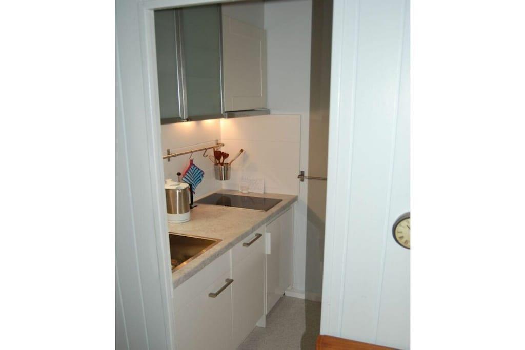 Stueetage: (entre(), åbent køkken(spisebord, elkedel, komfur, kaffemaskine, mikrobølgeovn, opvaskemaskine , køleskab), Stue/soveværelse(, , bibliotek, enkeltsovesofa, Fjernsyn, radio, stereoanlæg), Børneværelse(dobbeltseng), badeværelse(, toilet, bruser, håndvask)) , Førstehjælp, terrasse(, Strand, havemøbler)