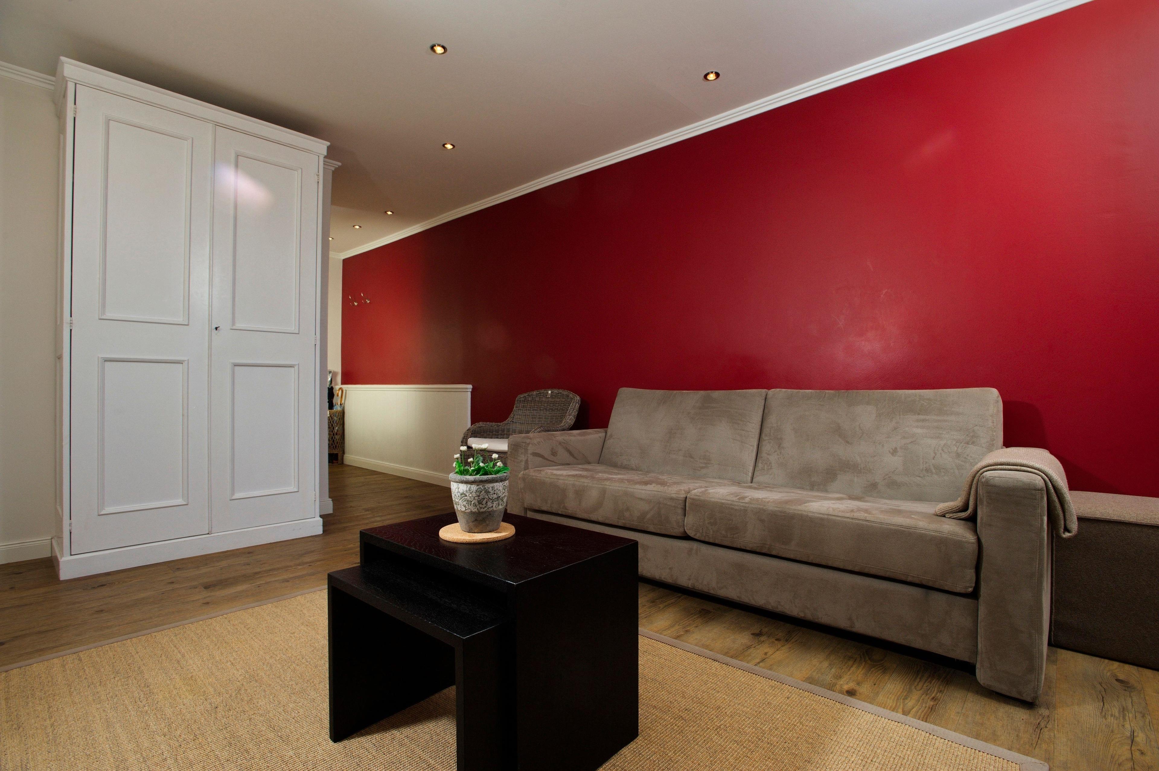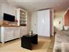 Im Wohnzimmer gibt es ein komfortables Schlafsofa mit hochwertigem Lattenrost und einen ausziehbaren Esstisch mit 2 Stühlen, direkt am Fenster mit Meerblick.