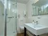 Das moderne Badezimmer verfügt über eine Halbrunddusche, einen beheizbaren Handtuchhalter, einen Design-Badezimmerschrank, sowie ein "Tivoli-Radio". Duschen mit Blick auf die Nordsee.