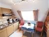 Die praktische Küchenzeile ist voll ausgestattet, inklusive Mikrowelle, und die gemütliche Essecke bietet Platz für genussvolle Mahlzeiten. Direkt nebenan befindet sich das hochwertig ausgestattete Duschbad, das für zusätzlichen Komfort sorgt.
