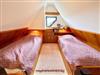 Im Dachgeschoss erwartet Sie ein beruhigender Schlafraum mit zwei hochwertigen Einzelbetten aus dunklem Holz. Hier können Sie wunderbar zur Ruhe kommen und den Tag entspannt abschließen.