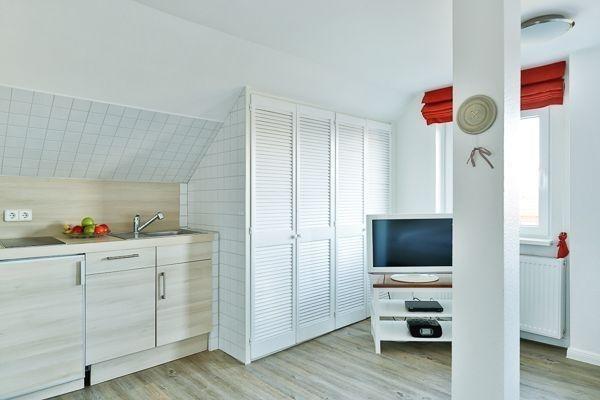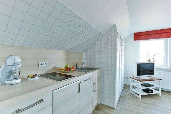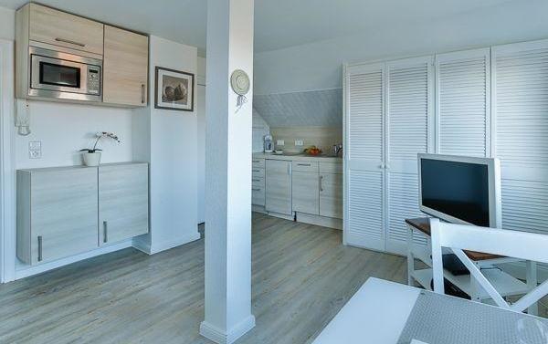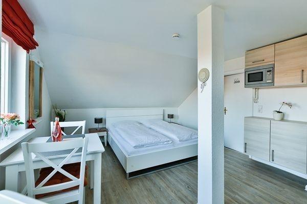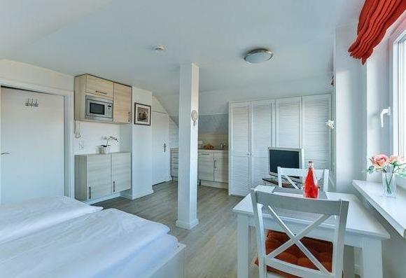 Renoviertes Appartement am schönen Wenningstedter Dorfteich auf Sylt. Modernes und gemütliches 1-Zimmer-Appartement (2. Etage, ca. 25 qm) mit Pantry-Küche (Ceran-Kochfeld, Geschirrspülmaschine, Mikrowelle, Kühlschrank und Eisfach, Kaffeemaschine, Toaster, Wasserkocher etc.), ein Doppelbett mit zwei Matratzen (1,80 x 2,00 Meter), Esstisch, TV, Radio, kostenloses Internet (WLAN) sowie ein Badezimmer mit Dusche, WC und Föhn. Waschmaschine, Wäschetrockner und ein kostenloser Pkw-Abstellplatz sind am Haus vorhanden.