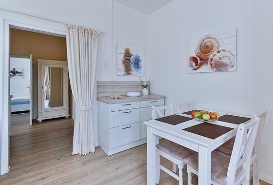 Schönes 2-Zimmer-Appartement in der 1. Etage, ca. 42 m²: Helle und gemütliche Wohnung mit großem Süd-Balkon, separate Küche mit Ceranfeld-Kochfeld, Geschirrspülmaschine, Mikrowelle, Dunstabzugshaube, Kühlschrank und Eisfach, eine Dolce Gusto-Kaffeemaschine sowie eine Filter-Kaffeemaschine, Toaster, Wasserkocher und weiteres Küchenzubehör., ein separates Schlafzimmer mit einem Doppelbett (2,00 x 2,00 Meter groß) und ein Kleiderschrank sowie ein renoviertes Badezimmer mit großer Dusche und WC. Das geräumige, nach Süden gelegene Wohnzimmer ist mit einer Couchgarnitur (Sofa und Sessel) und einem Esstisch ausgestattet. Ferner gehören zur Ausstattung: ein TV, ein Radio, kostenloses Internet (WLAN), ein Telefon und ein Föhn. Waschmaschine, Wäschetrockner und ein kostenloser Parkplatz (freie Parkplatzwahl) sind am Haus vorhanden.