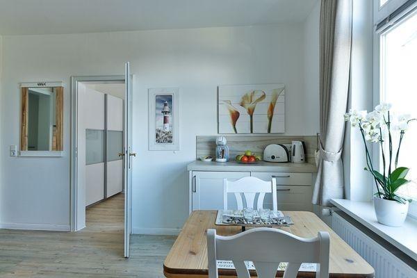 Schönes und gemütliches 2-Zimmer-Appartement - beim Wenningstedter Dorfteich auf Sylt gelegen. Das Appartement verfügt über eine Küchenzeile mit Ceran-Kochfeld, Geschirrspülmaschine, Mikrowelle mit Dunstabzug, Kühlschrank mit Eisfach, Kaffeemaschine, Toaster, Wasserkocher etc., offen zum Wohnraum mit einem Esstisch, ein separates kl. Schlafzimmer mit einem Doppelbett und ein Badezimmer mit Dusche und WC. Zur Ausstattung gehören ferner ein TV, Radio und kostenloses Internet (WLAN). Im Badezimmer steht Ihnen ein ein Föhn zur Verfügung. Im Wohnraum stehen eine gemütliche Couch und ein Fernsehtisch zur Verfügung. Waschmaschine, Wäschetrockner und ein kostenloser Pkw-Abstellplatz (freie Parkplatzwahl) sind am Haus vorhanden.