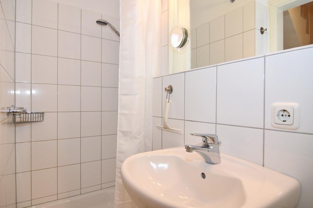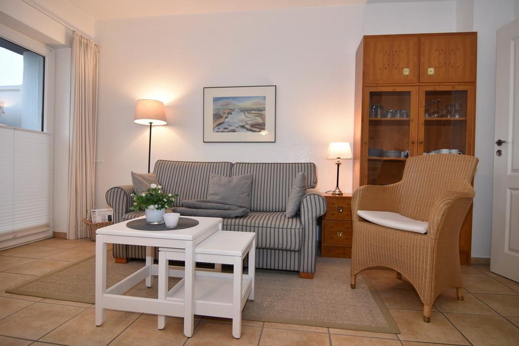 Hübsche 2-Zimmer-Maisonette-Ferienwohnung, ca. 45 qm im Haus "Atlantik". OG: Wohnraum mit Südbalkon und Strandkorb, Doppelschlafcouch, Rattansessel, Eßplatz, Flat-TV (Netflix), Internet ohne Gewähr, kleine offene Küchenzeile mit Geschirrspüler und Mikrowelle, Duschbad/WC. DG: Schlafzimmer mit Boxpringbett ( 2x90x200 ) und Schrank. Gepflegte Ausstattung. PKW-Stellplatz Nr. 9. Tierhaltung ist nicht gestattet. Waschküche im Hause. Bettwäsche und Handtücher sind zur Anreise aufgezogen. Nichtraucher-Wohnung!