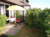 - Gartenterrasse mit ca. 80 m² durch Rosenhecke sichtgeschütztem Privatbereich mit Sitzecke, Strandkorb, Sonnenschirm und Zugang zum weitläufigen Wiesengelände