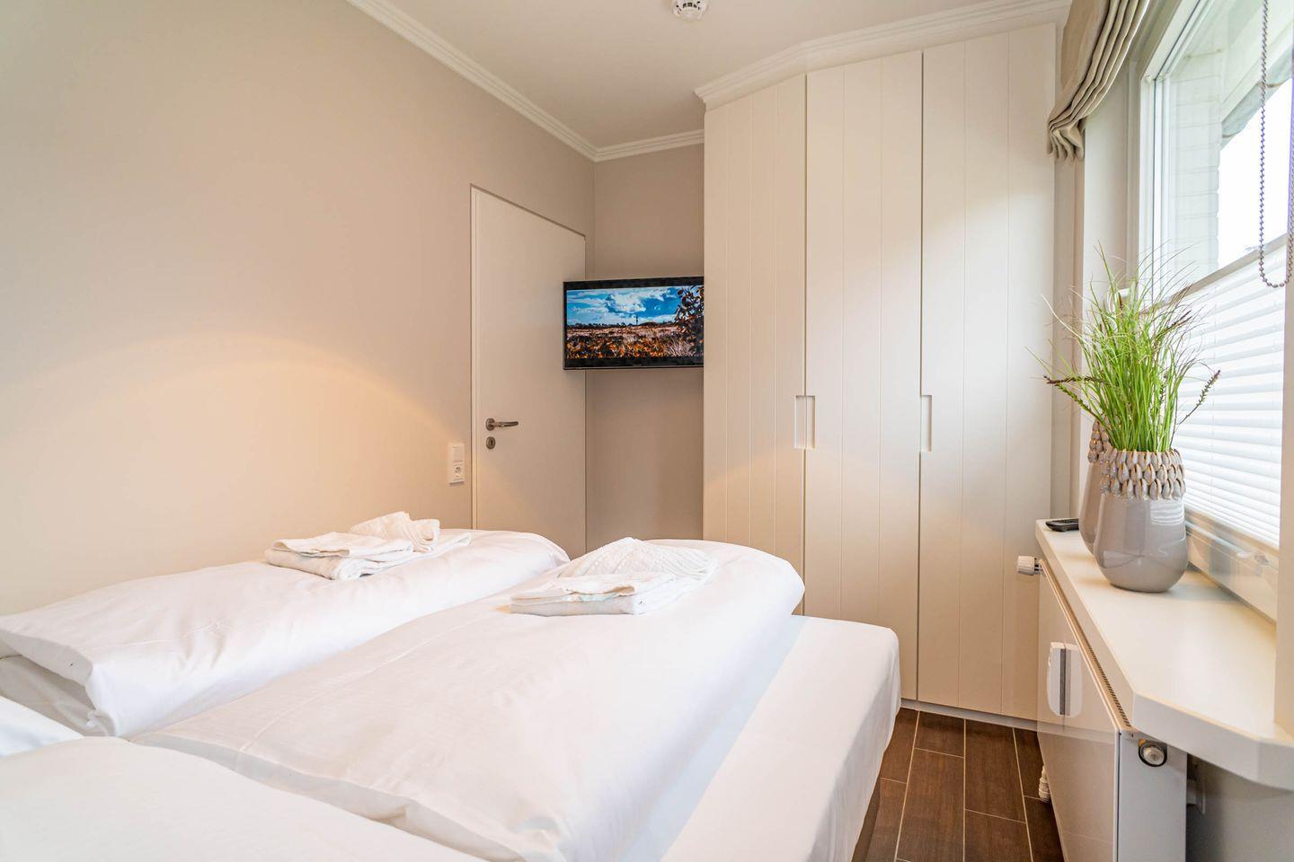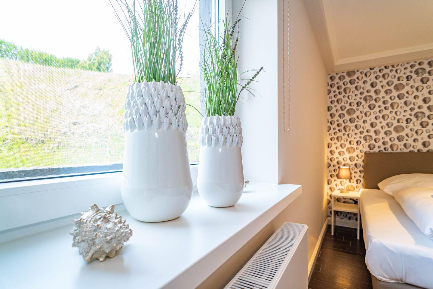 Die Ferienwohnung bietet Ihnen drei Zimmer auf zwei Ebenen (Erdgeschoss + Souterrain) mit ca. 70 qm Wohnfläche. Im EG befindet sich das große Wohnzimmer mit einem schönen Essbereich. Das Wohnzimmer ist mit einem Flatscreen-TV, einer Hifi-Anlage, einem DVD-Player und einem W-LAN-Anschluss ausgestattet. Außerdem verfügt das EG über eine halboffene, moderne Küche (Geschirrspüler, Backofen, Kaffemaschine) mit Durchreiche zum Esstisch und einem Schlafzimmer mit einem Doppelbett (140 x 200 cm). Im Souterrain sind das Duschbad mit WC und ein gemütliches Schlafzimmer mit großem Fenster, Doppelbett (180 x 200 cm) und Flatscreen-TV gelegen. Auf der wunderschönen Südterrasse mit Gartenmöbeln und Strandkorb (saisonal) lässt es sich besonders gut erholen!