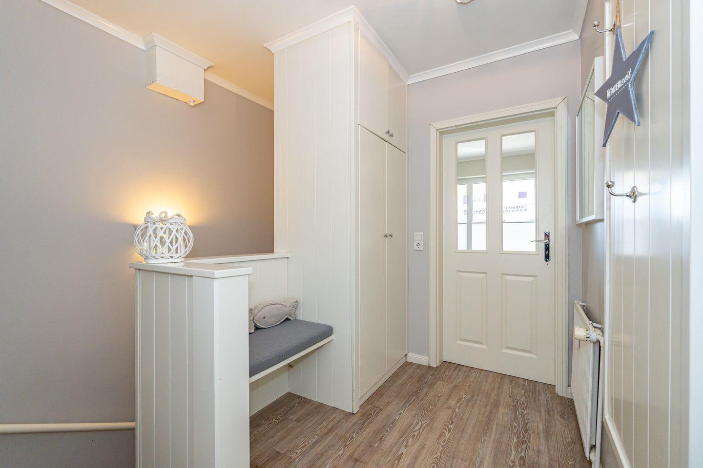Im Erdgeschoss dieser Ferienwohnung befinden sich der Wohn- und Essbereich mit Sofa und ein SMART TV mit Magenta TV, eine voll ausgestattete, offene Küche (Spülmaschine, Cerankochfeld, Back-Kombi), ein Flur und das helle Duschbad mit WC. Vom Wohnbereich haben Sie Zugang zu der Terrasse mit Gartenmöbeln. Der Strandkorb steht Ihnen saisonal zur Verfügung. Im Souterrain liegen das zweite Duschbad mit WC und die beiden Schlafzimmer mit TV, eines mit Doppelbett (180 x 200 cm) und eines mit zwei Einzelbetten. In der Ferienwohnung steht Ihnen WLAN zur Verfügung. Eine Waschmaschine und ein Trockner sind im Gemeinschaftsraum (gegen Gebühr) vorhanden. Ein Pkw-Stellplatz gehört zu dieser Wohnung. Fahrradstellplätze befinden sich am Haus. Hunde sind auf Anfrage in dieser Ferienwohnung erlaubt (10,- € pro Tier/Tag). Weitere Bilder unter www.meerquartiere-sylt.de
