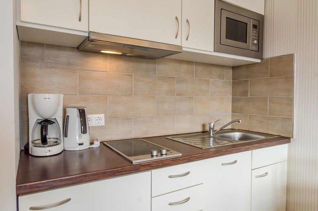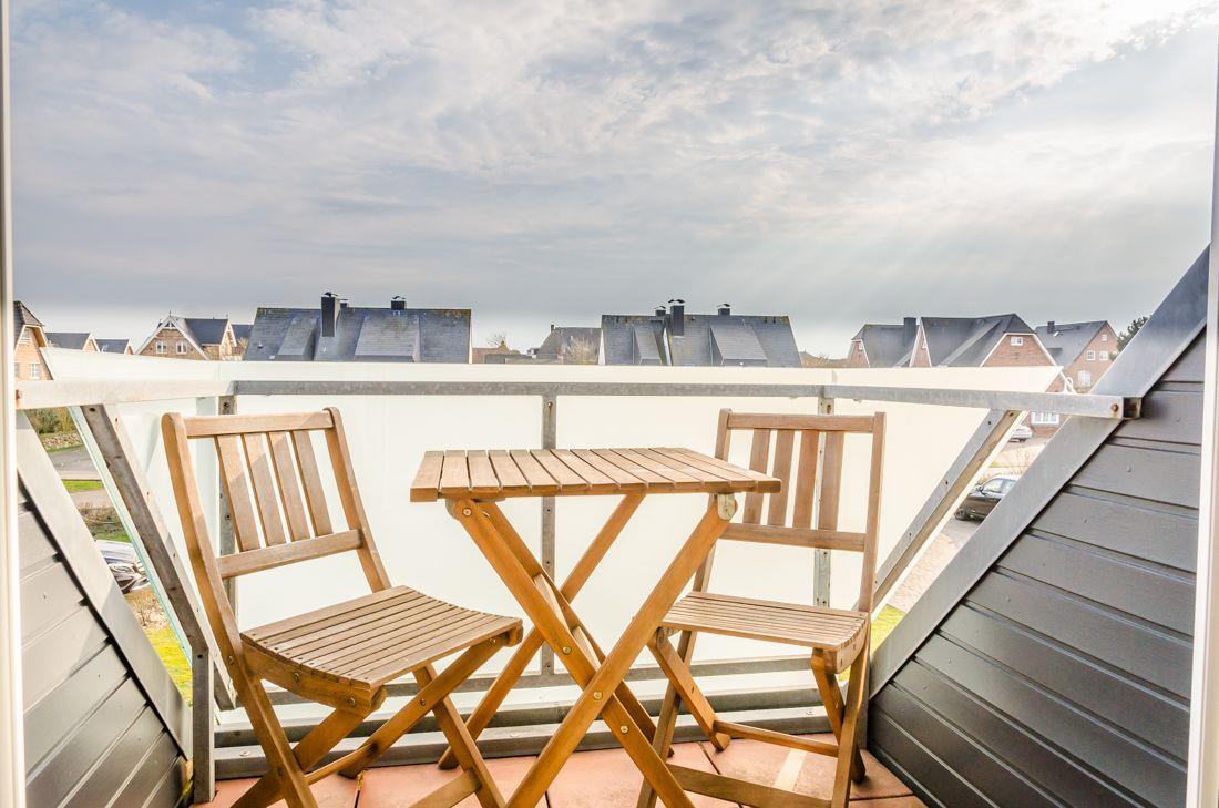 Die 2-Zimmer-Ferienwohnung "Westbrise", ruhig gelegen am Ende einer Sackgasse, befindet sich im 1 OG. einer Ferienwohnungs-Anlage. Der gemütliche Wohn- und Essbereich ist ausgestattet mit einem Essplatz, Sofa und TV. Von dort aus haben Sie Zugang zum Südwest-Balkon. In der offenen Küche (Kühlschrank, Mikrowelle, Geschirrspüler, Kaffeemaschine) lassen sich köstliche Mahlzeiten zubereiten. Auf der selben Ebene befindet sich das innen liegende Duschbad mit WC. Über eine Treppe gelangt man in das offen gestaltete Schlafzimmer mit Doppelbett. Weiter erwartet Sie hier ein kleiner, gemütlicher Erker wo sich eine kleine Leseecke mit einem Schreibtisch befindet. Hier können Sie in Ruhe lesen oder mit Ihrem Laptop im Internet surfen. Die WLAN-Nutzung steht unseren Gästen kostenlos zur Verfügung. Die zur Anlage gehörende Gemeinschaftssauna lädt vor allem in der kalten Jahreszeit zum Entspannen ein. Ebenfalls im Nachbargebäude stehen Ihnen eine Münz-Waschmaschine sowie ein Wäschetrockner zur Verfügung. Zu dieser Wohnung gehört zusätzlich eine Sonnenkuhle im Gemeinschaftsgarten (Strandkorb saisonal).