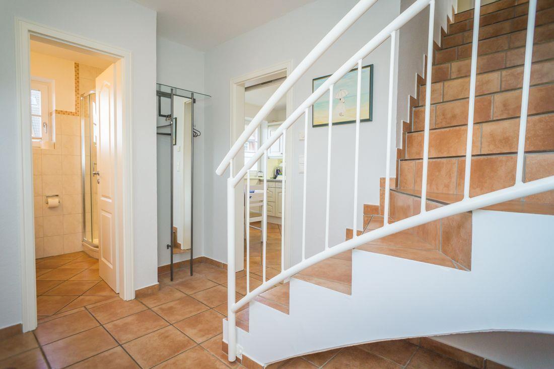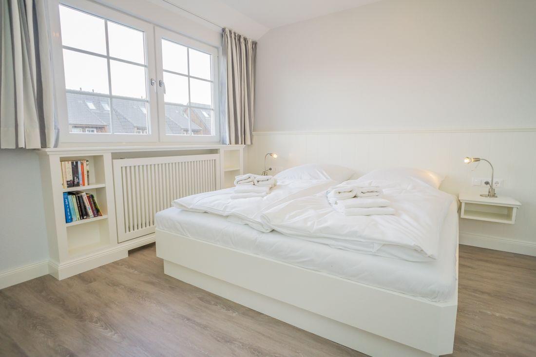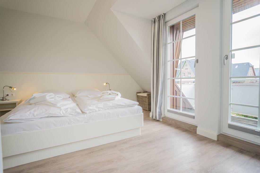 Vom Eingangsbereich mit Garderobe gelangen Sie in das lichtdurchflutete und großzügige Wohn- / Esszimmer mit zwei einladenden großen Sofas, Flatscreen, DVD-Player, Stereoanlage und Essecke. Von hier haben Sie Zutritt zur Süd-Terrasse mit Garten und Bestuhlung. Hier können Sie im vorhandenen Sylter Strandkorb bei einem Glas Wein den Sonnenuntergang genießen. Im Erdgeschoss liegen zudem das Duschbad mit WC, die separate, vollausgestattete Küche (Spülmaschine, Backofen, Ceranfeld, Kühlgefrierkombi, Nespresso-Maschine) und ein Hauswirtschaftsraum mit Waschmaschine & Trockner. Über die Treppe gelangen Sie ins 1. OG, wo Sie zwei Schlafzimmer mit je einem Doppelbett (180 x 200 cm) und Flatscreen vorfinden. Das Schlafzimmer Richtung Süden, verfügt zudem über einen herrlich sonnigen Balkon mit passenden Möbeln.