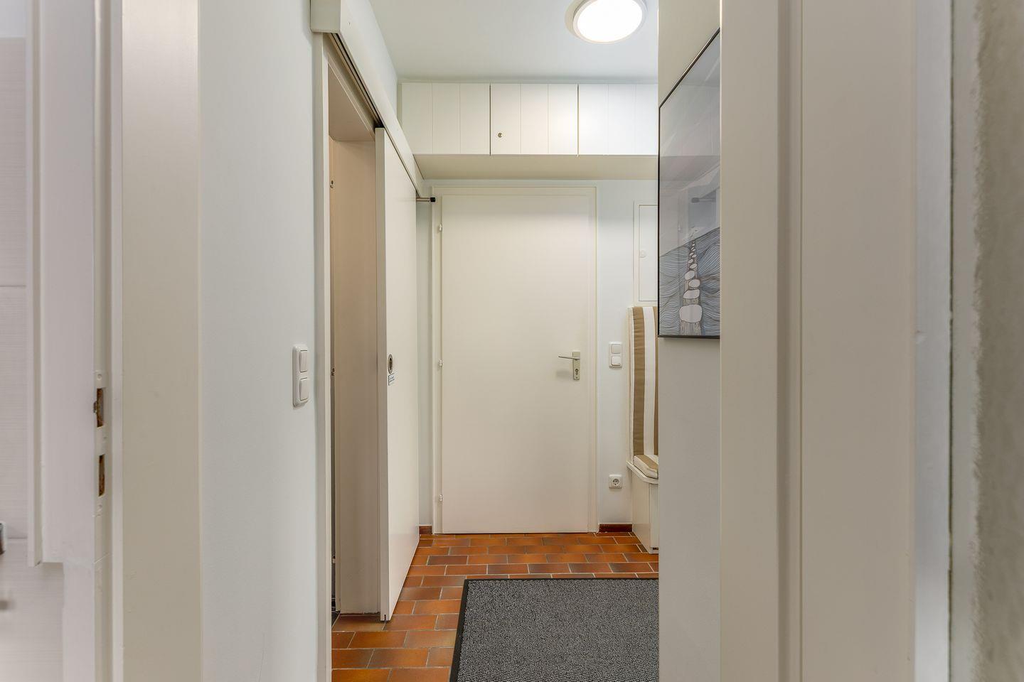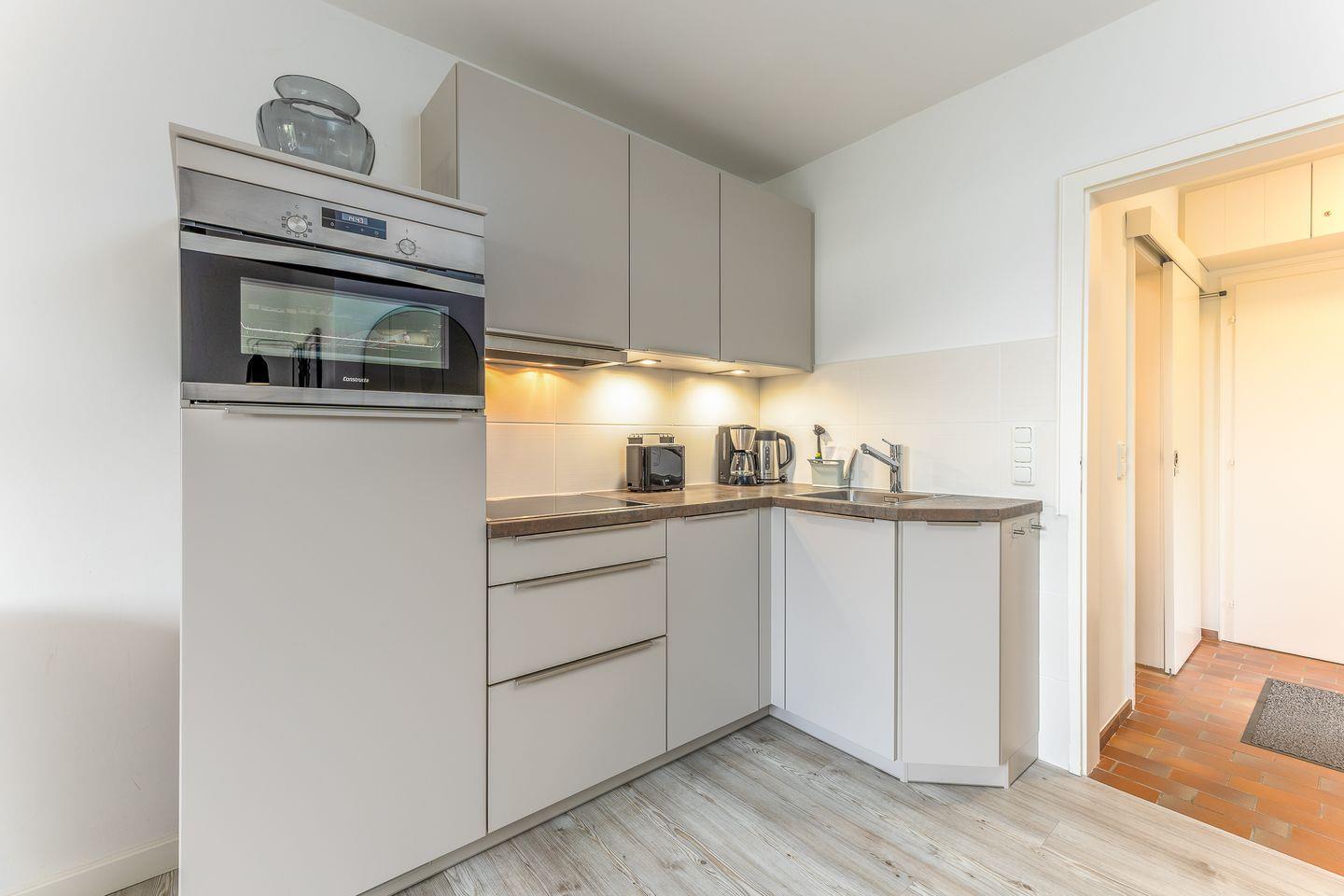 Wem der Sinn nach Grün steht, der macht es sich auf der kleinen Terrasse bequem. Im Inneren des Appartements bilden Weiß, Blau und Grau eine frische, klare Einheit. Ganz in Weiß gehalten präsentiert sich hingegen das Schlafzimmer, in dem das Doppelbett durch seinen Vordereinstieg wie eine kuschelige Koje anmutet. Maßgeschneiderte Einbauschränke sorgen nicht nur hier, sondern auch im Duschbad und Flur für genügend Stauraum. Kein Wunder, dass das Appartement nach einer Sylter Sagengestalt benannt wurde, denn der gute Geist Nis Puk, der für Erwachsene unsichtbar ist, schwebt in Form von viel Stilgefühl durch die ganze Wohnung.