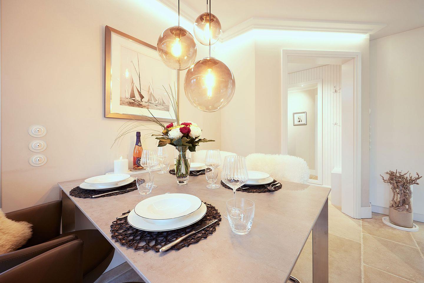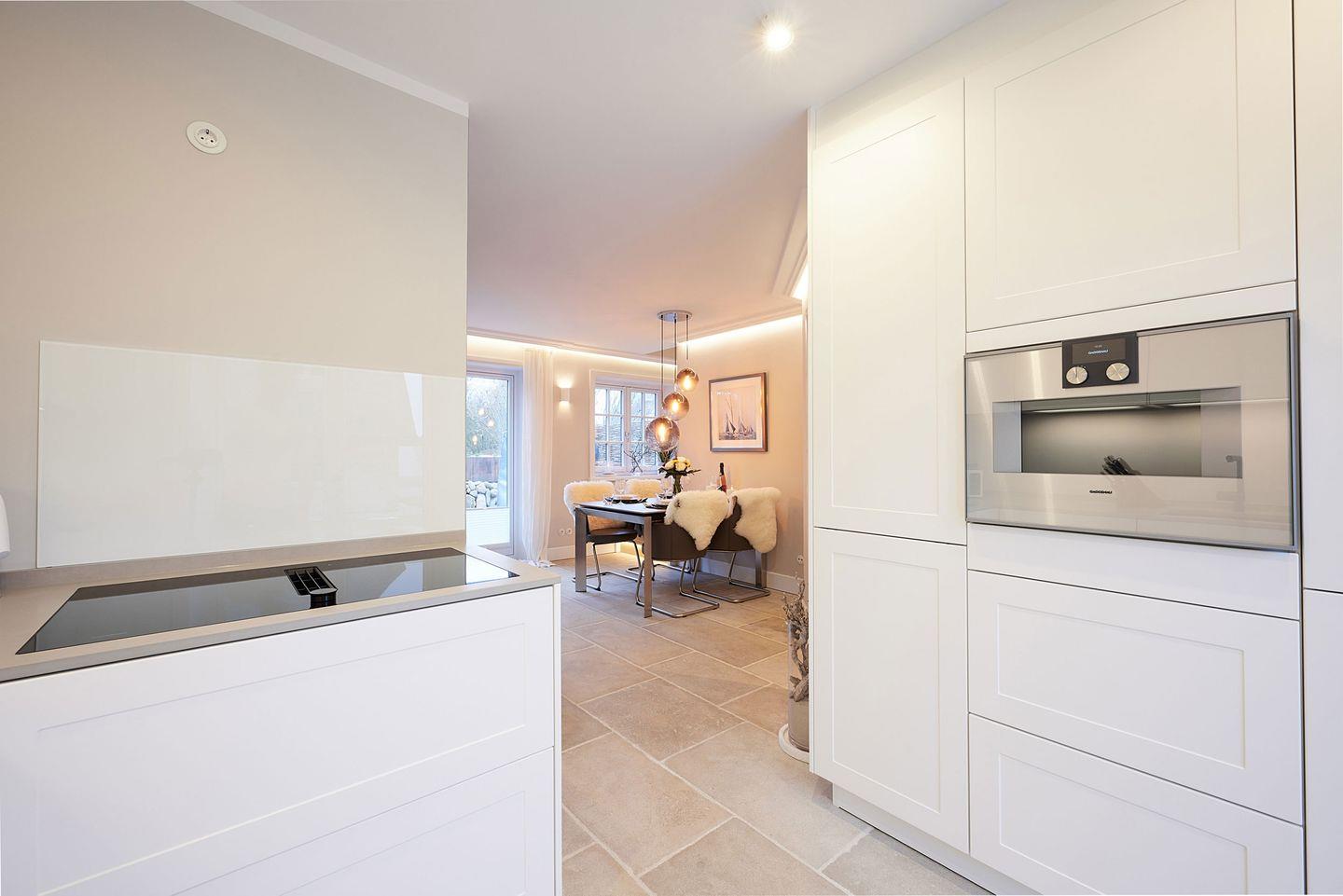 Die offene Wohnküche bietet Ihnen jeglichen Komfort und ist mit hochwertigen Markengeräten ausgestattet. Der Induktionsherd, die Filterkaffeemaschine und die Nespresso-Maschine machen das Kochen und Zubereiten von Mahlzeiten zu einem Vergnügen. Genießen Sie Ihre Kreationen am großen Esstisch, der sich perfekt für gemeinsame Mahlzeiten oder gesellige Runden eignet.