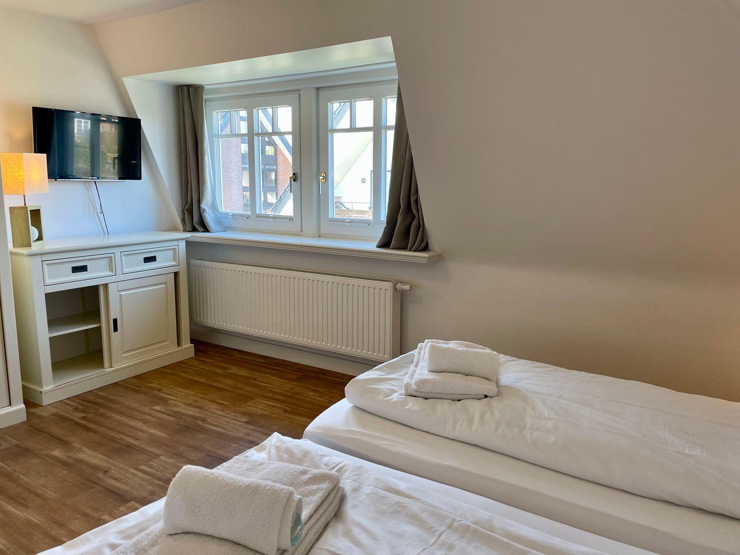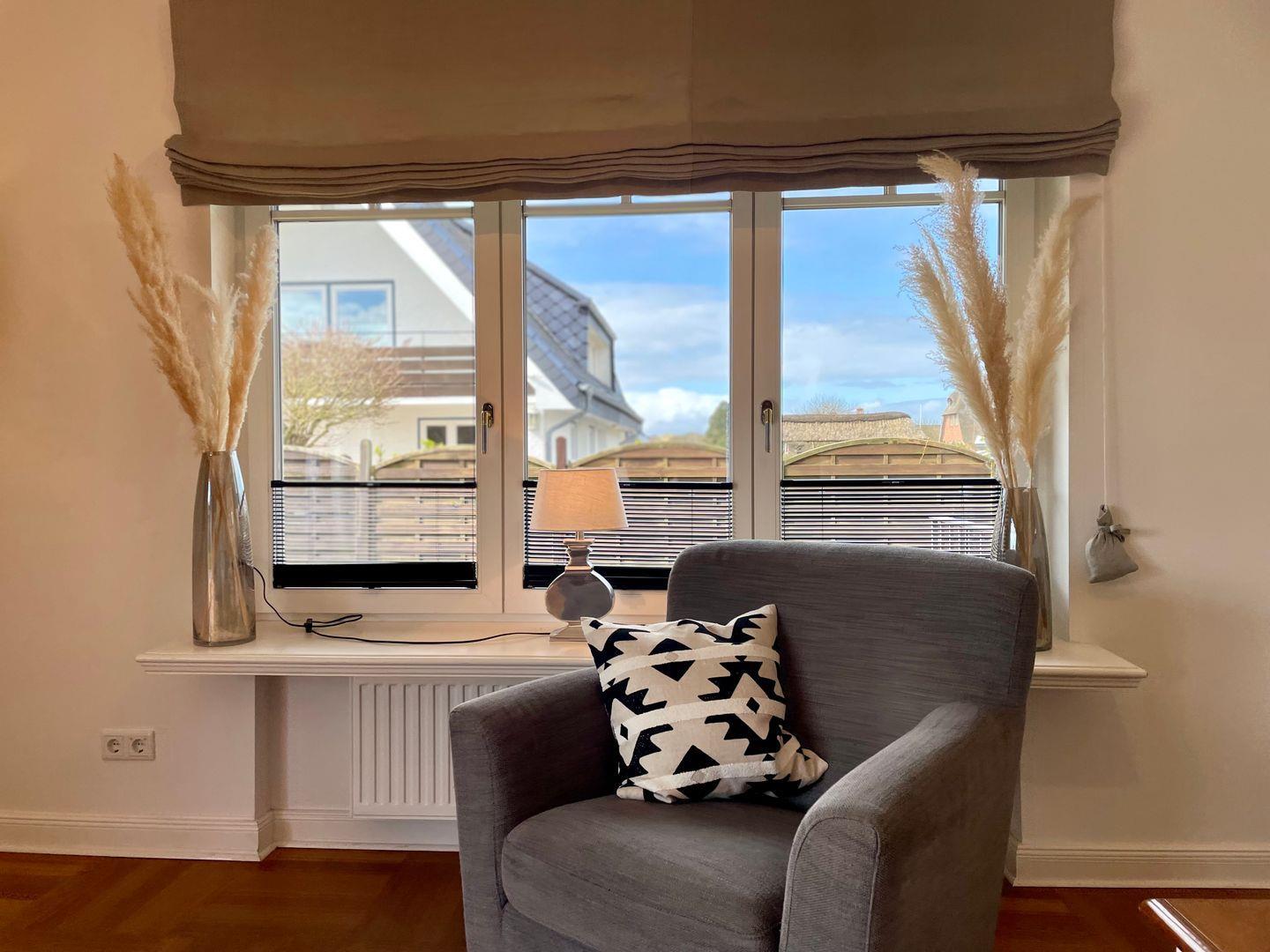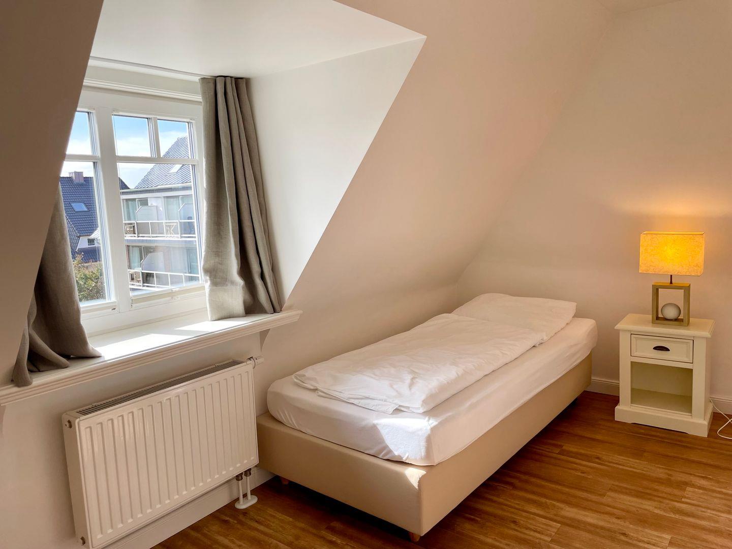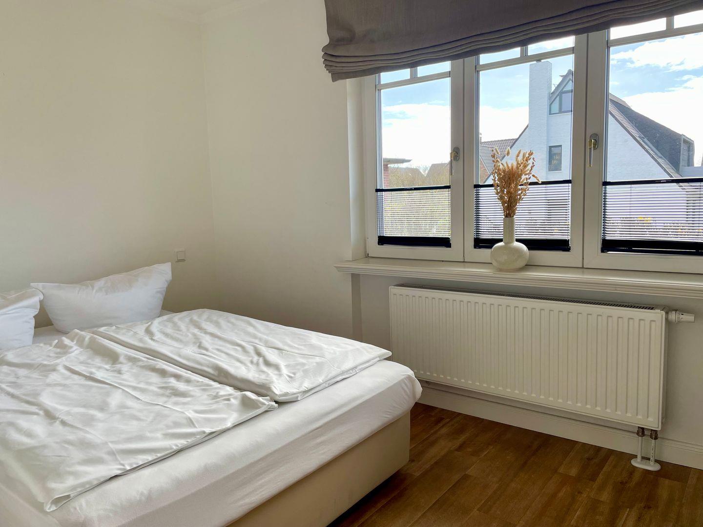 Dieses großzügige Haus präsentiert sich im Landhausstil mit hochwertigen Materialien und warmen Farben. Das sehr große Wohnzimmer mit Parkettfußboden, Esstisch und gemütlicher Sitzgarnitur ist das Herzstück dieses Hauses. Angrenzend befindet sich dann die wind- und sichtgeschützte Terrasse mit eigenem Strandkorb und Gartenmöbeln. Im Erdgeschoss befindet sich ebenfalls die separate Küche, sowie ein Schlafzimmer mit Doppelbett und ein Schlafzimmer mit Einzelbett.