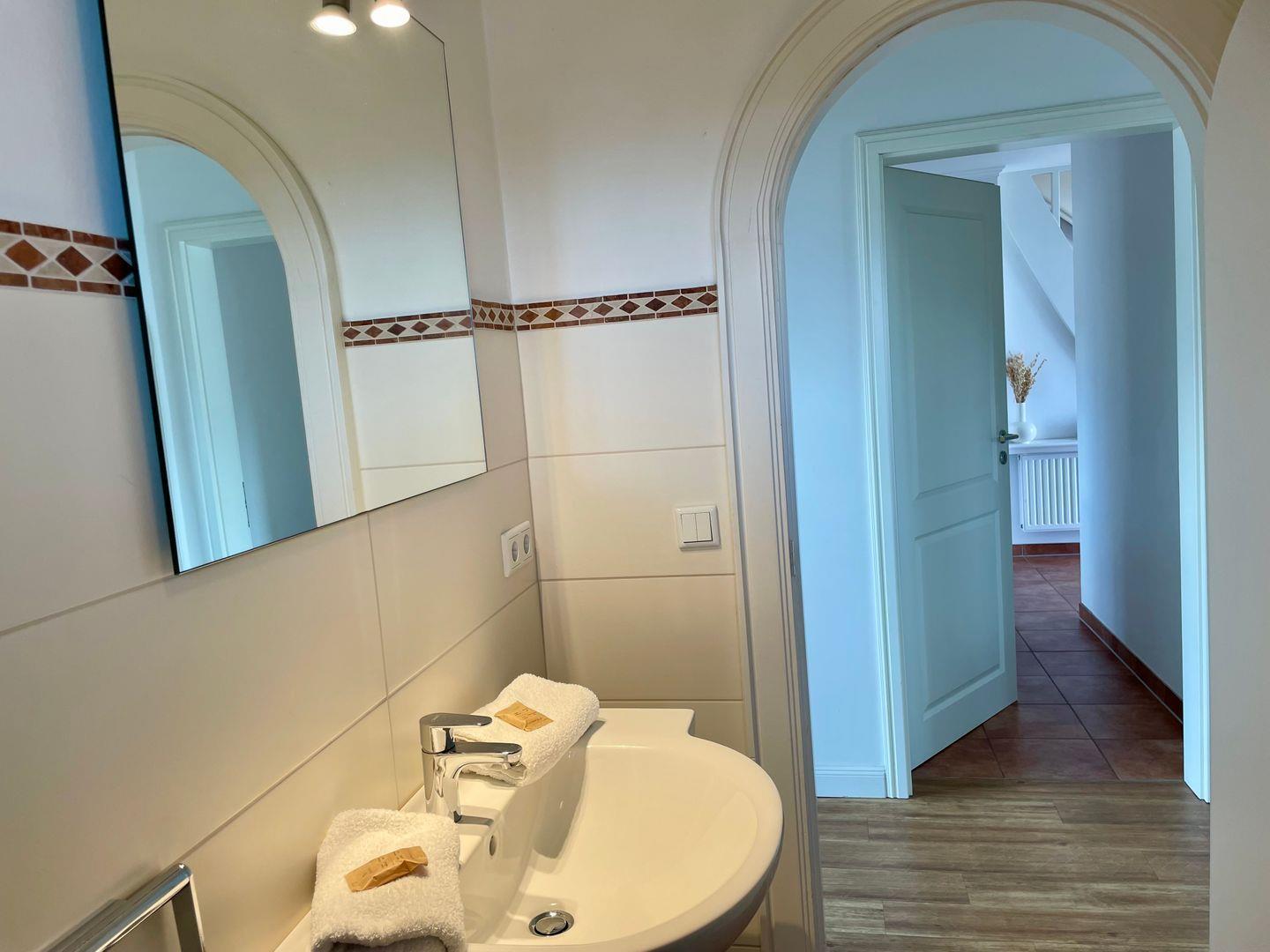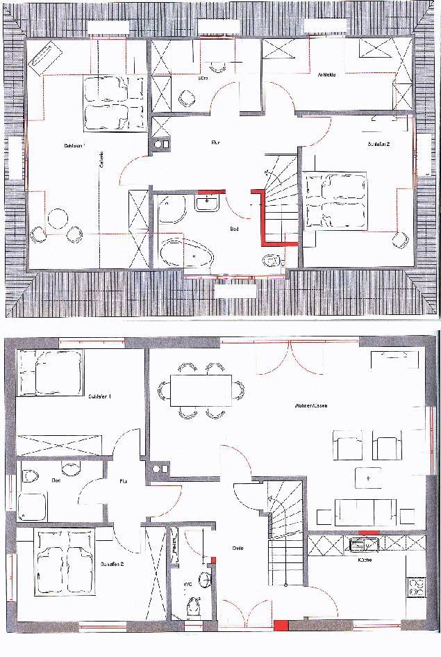 Im Obergeschoss finden Sie neben den 3 weiteren Schlafzimmern noch ein separates Büro. Einige Flachbildfernseher, Stereoanlage und im ganzen Haus WLAN laden auch an Tagen mit schlechterem Wetter zum Verweilen ein.
