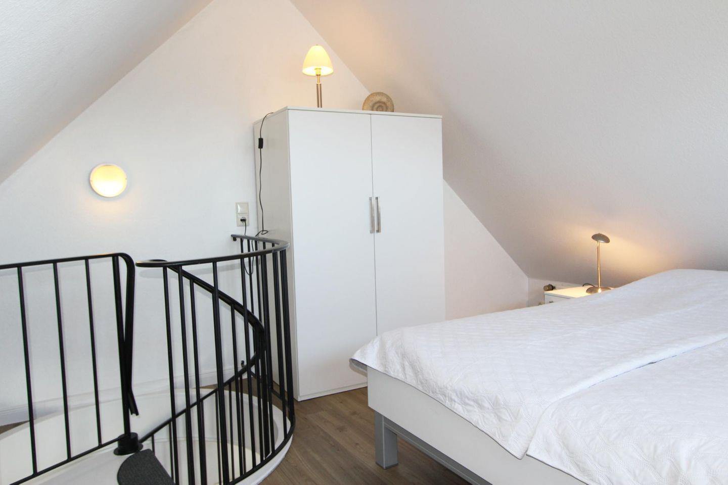 Auf der Wohn-Ebene finden Sie einen schönen Doppelschlafraum. Der im Dachgeschoss gelegene Schlafraum bietet ebenfalls ein komfortables Doppelbett und ermöglicht so erholsames Träumen. Die Wendeltreppe ins Dachgeschoss ist sehr eng!