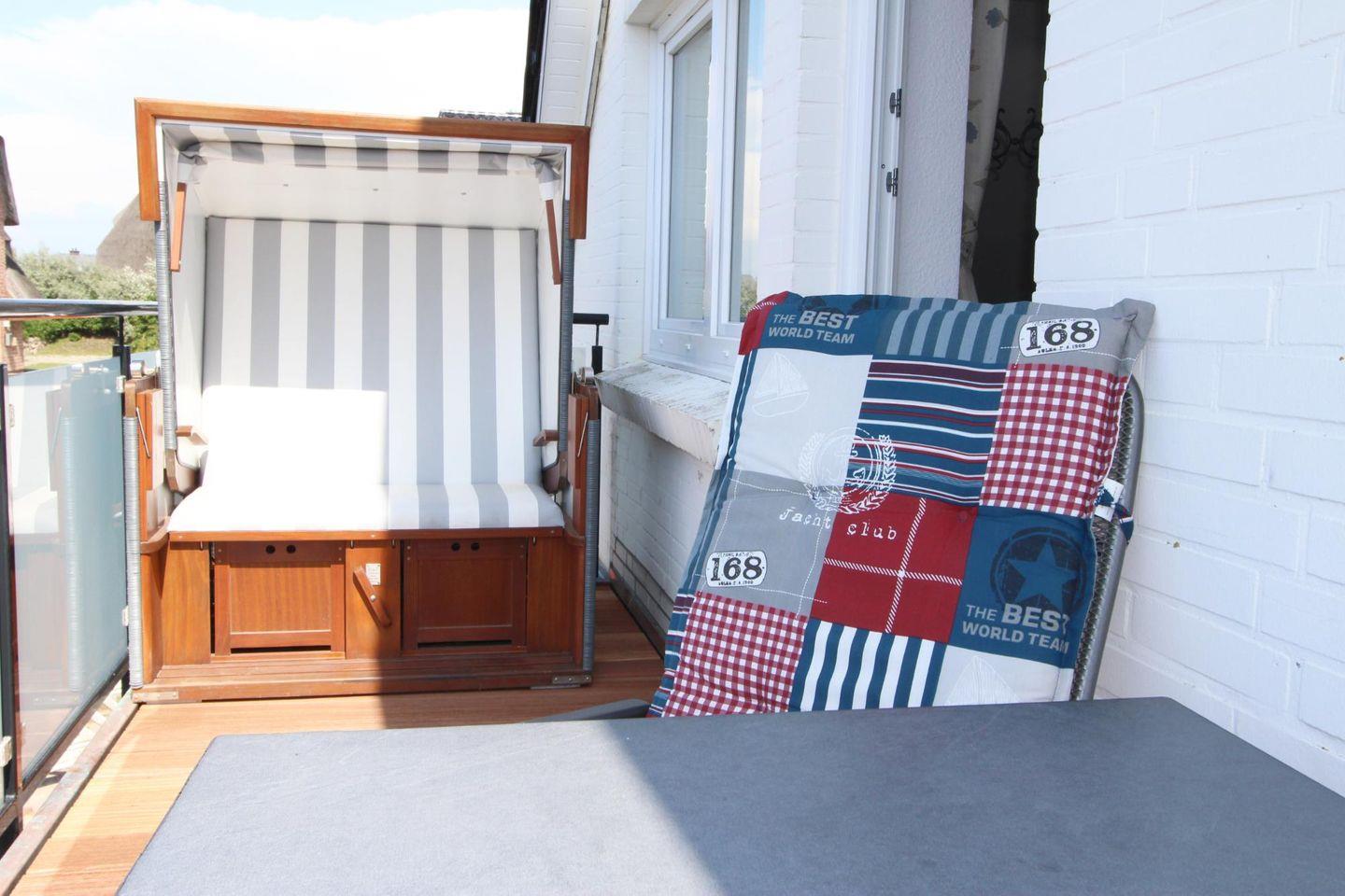 Im Strandkorb auf dem West-Balkon können Sie bequem die Augen schließen und die frische Luft der Nordsee in Ihre Lungen strömen lassen. Besonders abends genießen Sie hier die letzten Sonnenstrahlen des Urlaubstags!