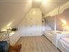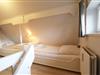 Im Schlafraum unterm Dach befinden sich zwei Einzelbetten. Diese sind durch maßgefertigte Einbaumöbel ideal in den Raum gefasst. Ein geräumiger Schrank bietet ausreichend Stauraum für Ihr Gepäck.