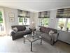 Der stilvoll gestaltete Wohnbereich im Erdgeschoss mit Blick auf den grünen Garten lädt mit zwei schönen Zweisitzern, eine gemütliche Sitzecke formierend, zum Entspannen ein.