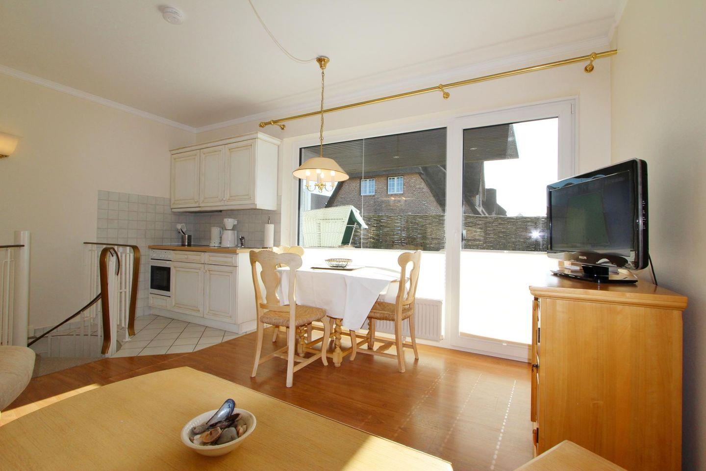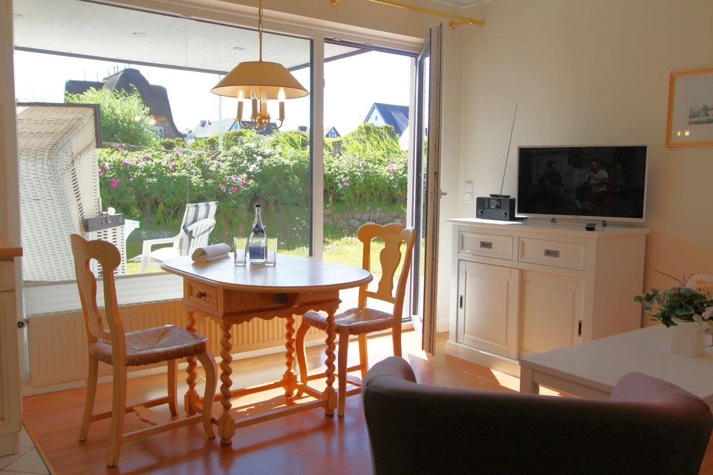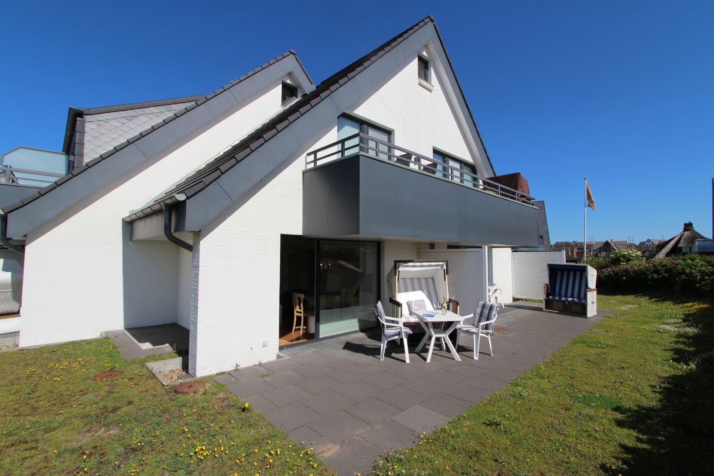 Die Terrasse eignet sich an sonnigen Tagen ideal für ein Frühstück an der frischen Luft. Ihnen steht ferner ein eigener inseltypischer Strandkorb (April bis Oktober) zur Verfügung.