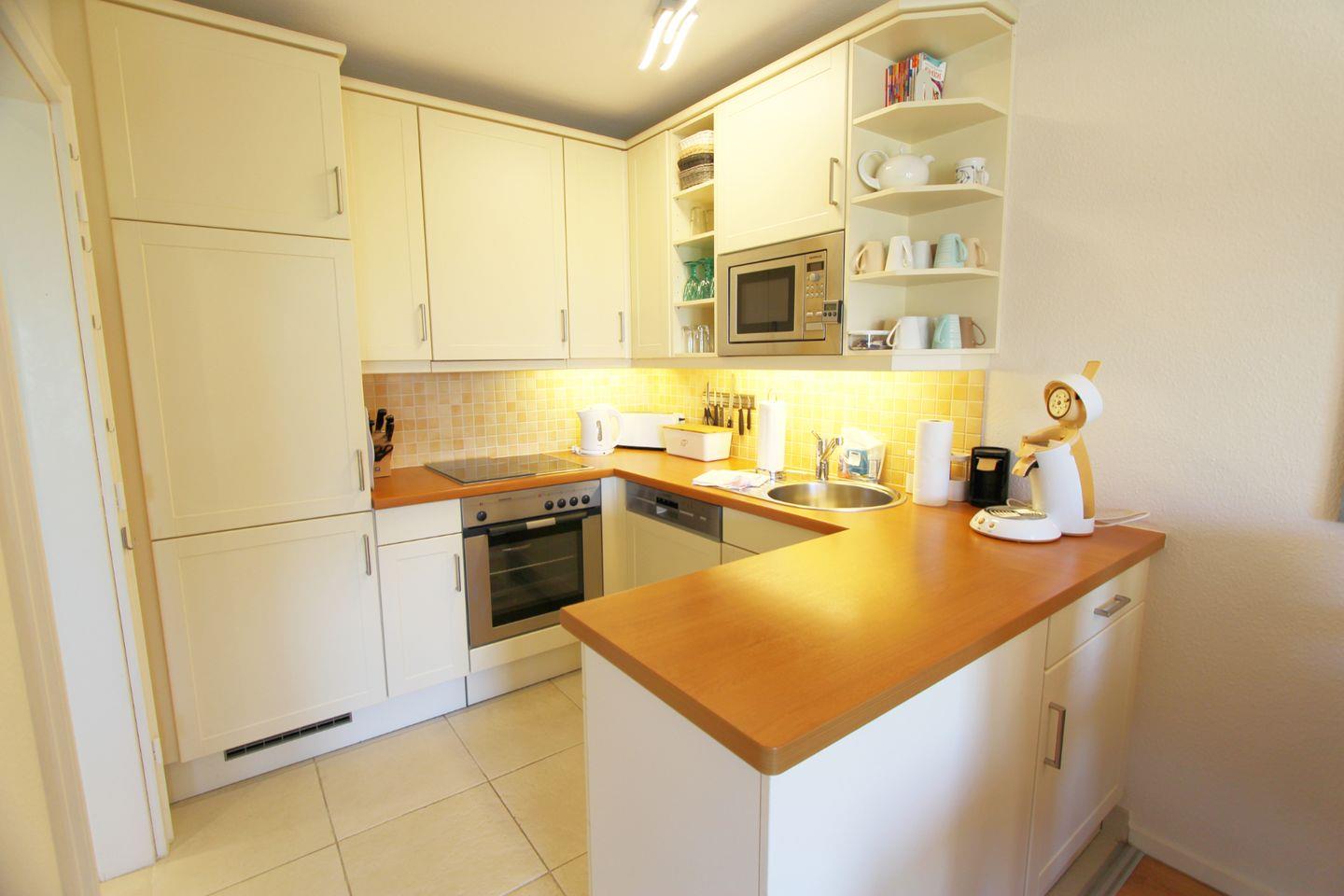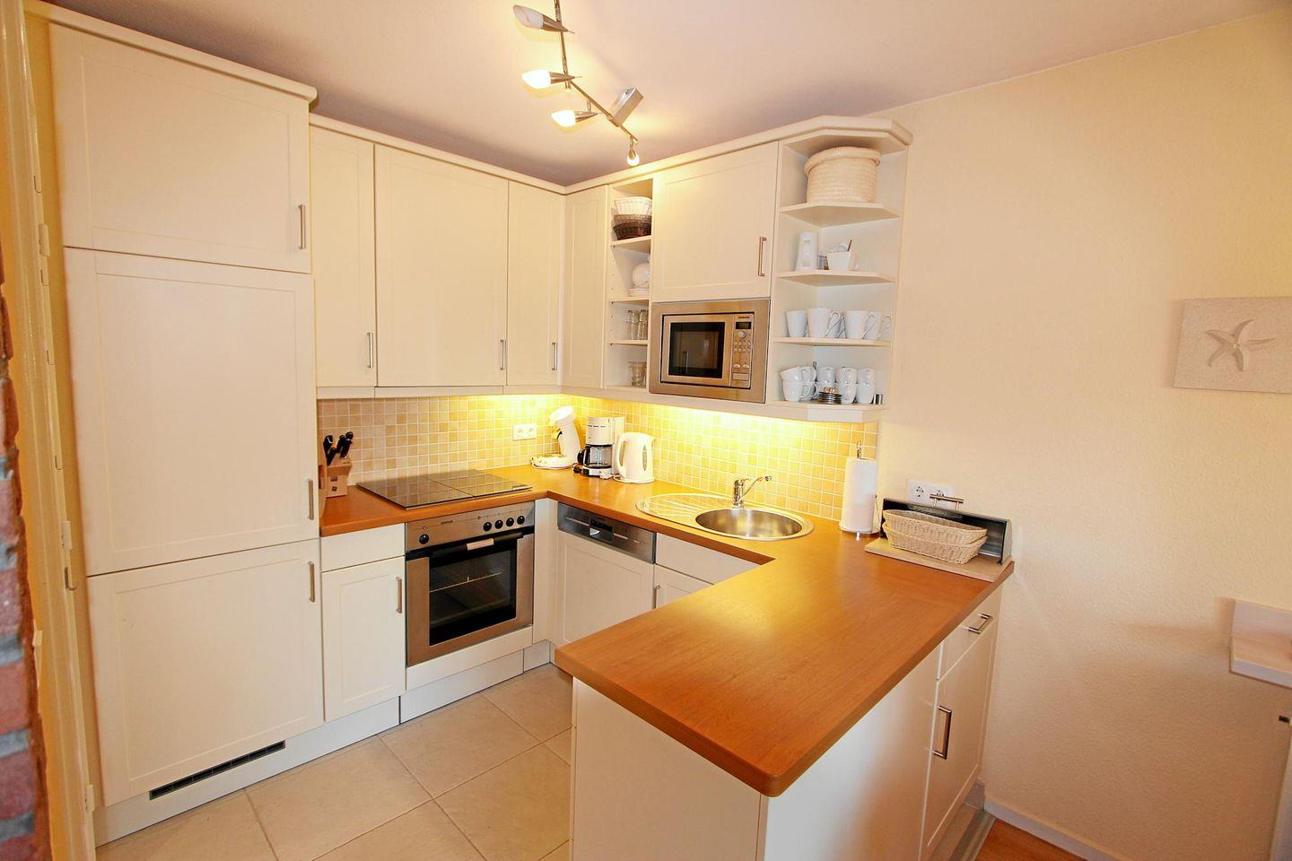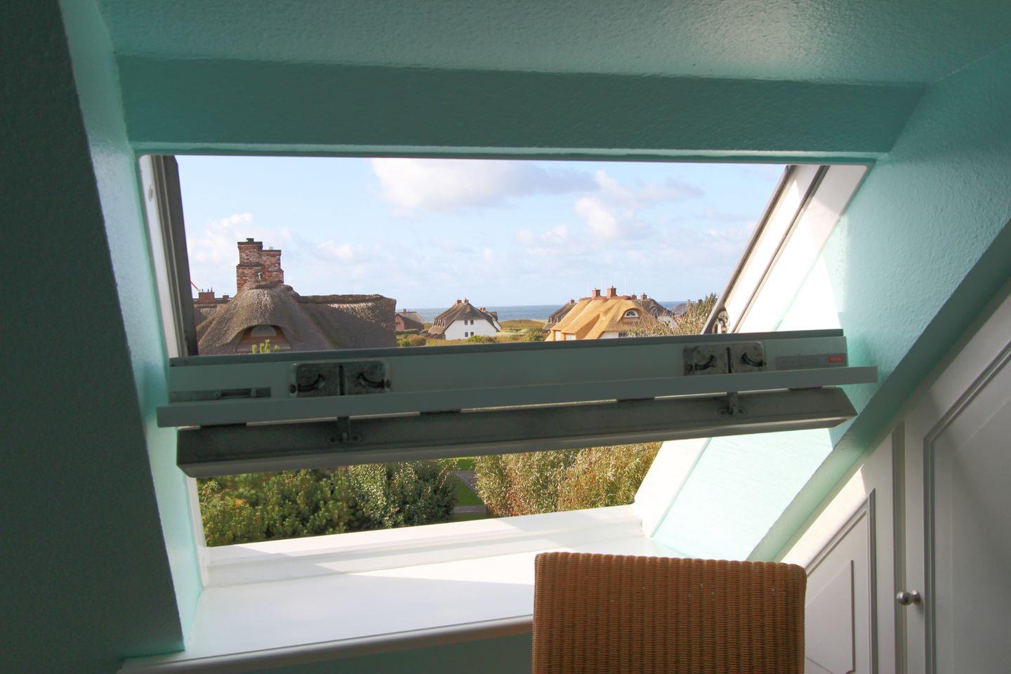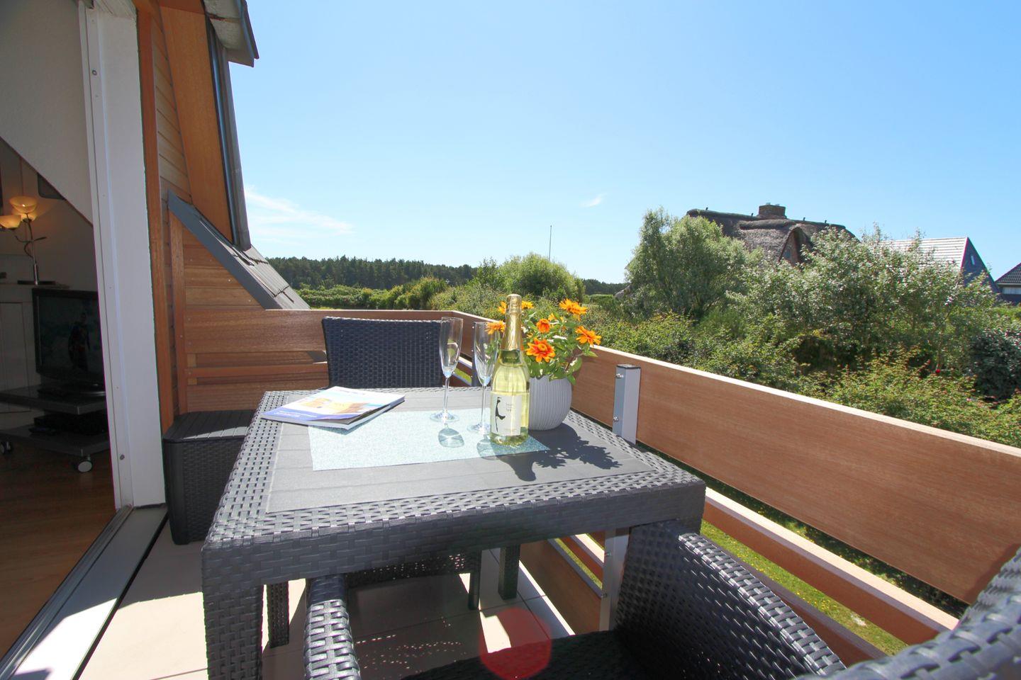 Highlight der Wohnung ist der schöne West-Balkon, von dem aus Sie in der Ferne das blaue Strahlen des Meeres erblicken! Erleben Sie mit Blick auf die umliegenden reetgedeckten Häuser ein köstliches Glas Wein und lassen Sie den Tag so ideal ausklingen.