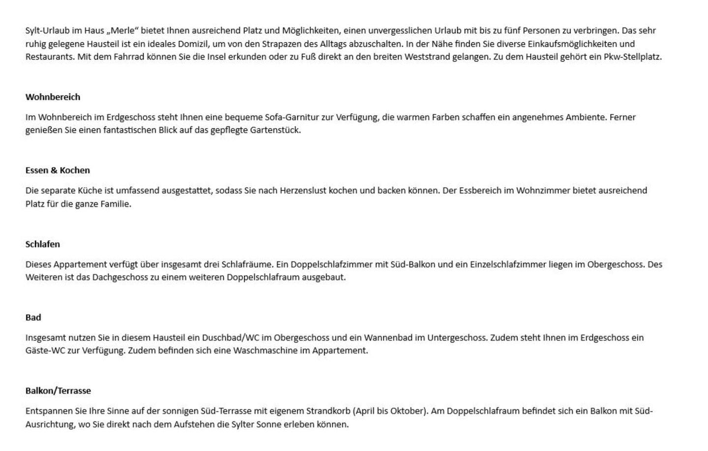 Liebevoll eingerichtetes Hausteil im Herzen Wenningstedts auf vier Ebenen. Genießen Sie erholsame Tage an der Nordsee und erleben Sie die Insel von Ihrer schönsten Seite! Die sonnige Süd-Terrasse eignet sich hervorragend, um zusammenzukommen und die Erlebnisse des Tages gemeinsam zu reflektieren.