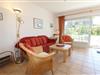 Im Wohnbereich im Erdgeschoss steht Ihnen eine bequeme Sofa-Garnitur zur Verfügung, die warmen Farben schaffen ein angenehmes Ambiente. Ferner genießen Sie einen fantastischen Blick auf das gepflegte Gartenstück.