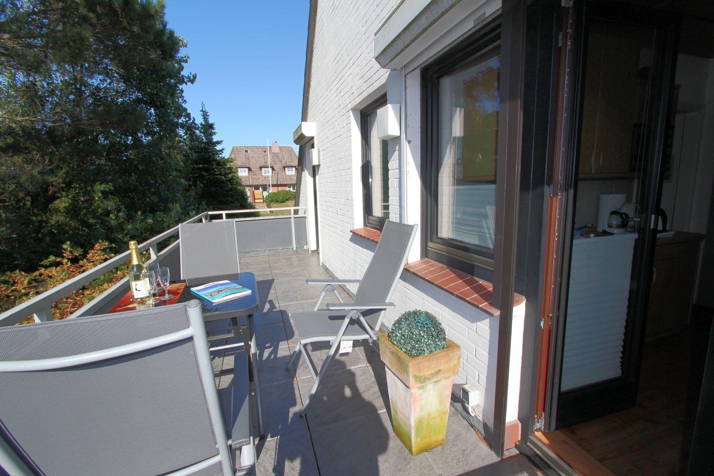Der Balkon ist nach Westen ausgerichtet und verspricht somit auch am Abend noch einige Sonnenstunden. Hier können Sie gemeinsam speisen, lachen und die Erlebnisse des Tages reflektieren.