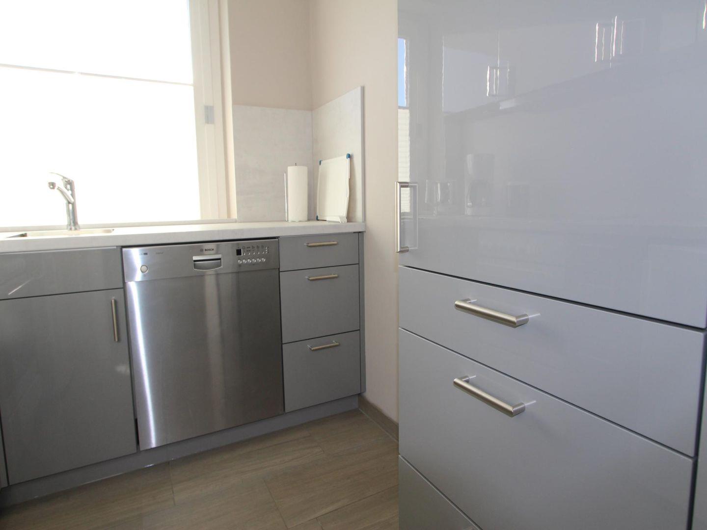 In der separaten, frisch renovierten Küche kann nach Herzenslust gekocht werden. Der Esstisch genügend Platz, um gemeinsam zu speisen.
