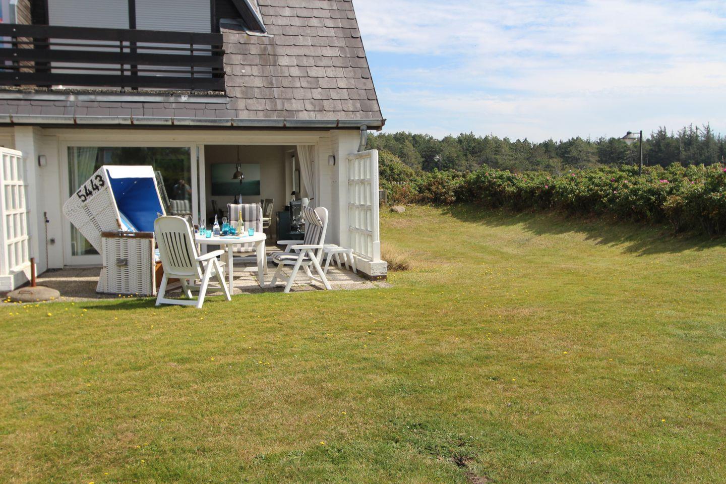 Auf der sonnigen West-Terrasse entspannen Sie bei gutem Wetter den ganzen Tag lang in der Sylter Sonne und können in der Ferne das Blau des Meeres erblicken! Ein unvergessliches Erlebnis für Jung und Alt!