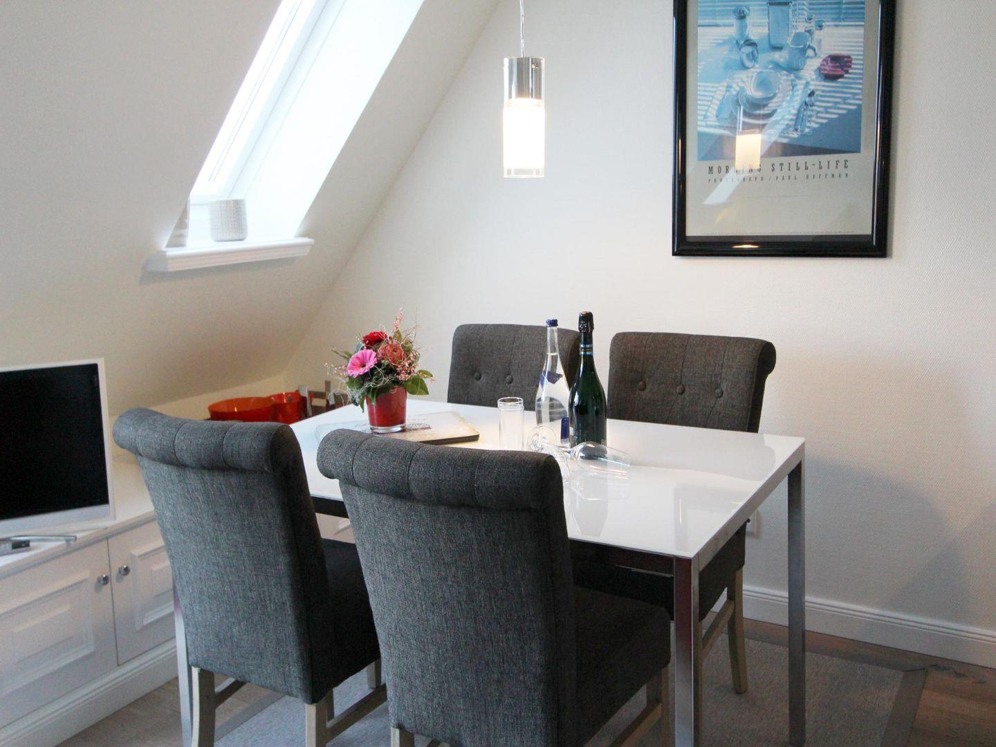 Genießen Sie Ihre Tage auf der Insel in vollen Zügen und urlauben Sie in diesem komfortabel ausgestattete Ferienwohnung im Ober- und Dachgeschoss eines Hauses mit mehreren Ferienwohnungen. Durch die ruhige Lage in einer Sackgasse entspannen Sie hier in Ruhe und nehmen sich eine Auszeit vom Stress des Alltags. Mit dem Fahrrad erreichen Sie in wenigen Minuten den nahegelegenen Wenningstedter Weststrand und die Geschäfte im Ort. Zu dem Appartement gehört ein Pkw-Stellplatz.