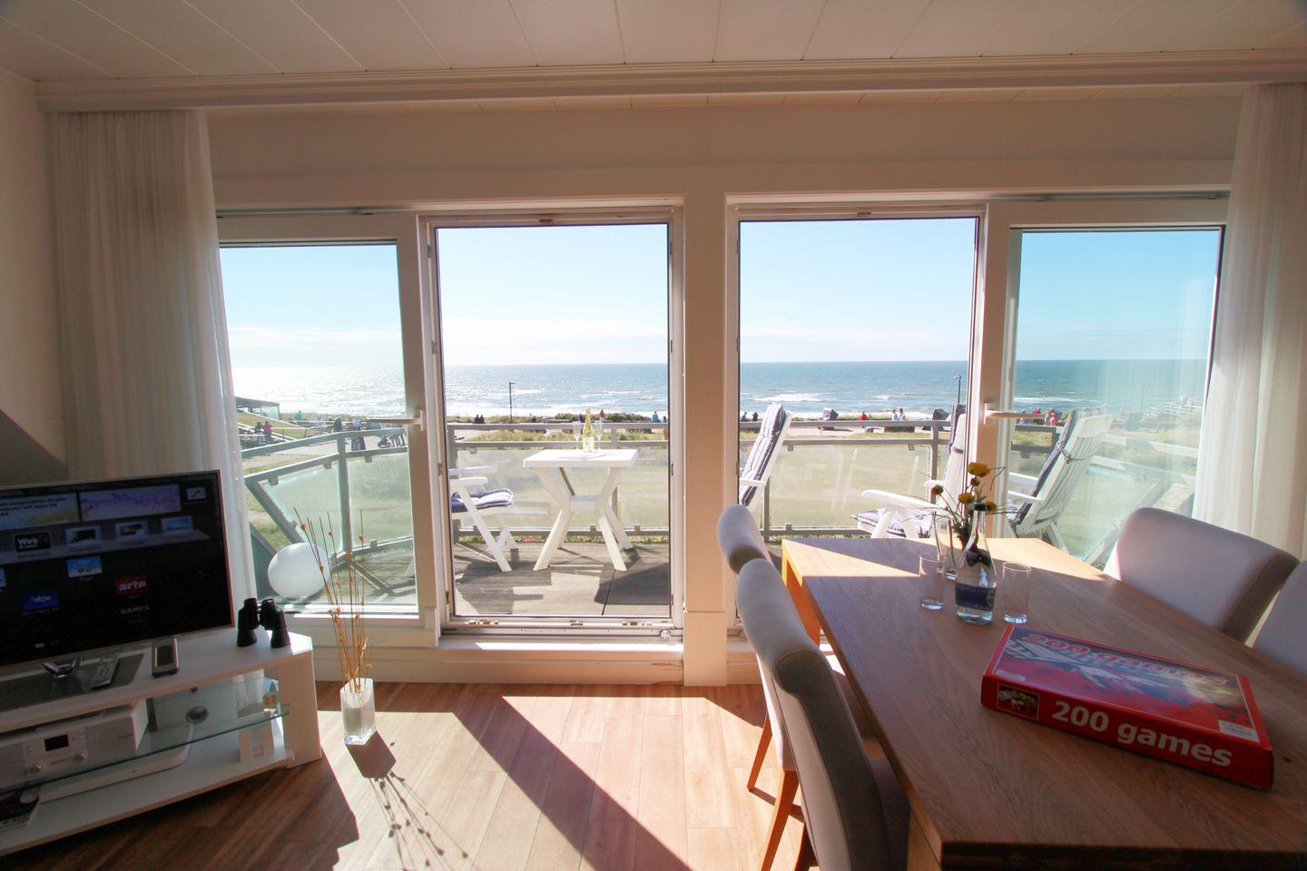 Luxus-Appartement mit einzigartigem Meerblick in erster Strandlage! An der schönen Promenade von Wenningstedt gelegen, bietet diese Drei-Zimmer-Wohnung alles für ein exklusives Urlaubserlebnis. Profitieren Sie von der gehobenen Ausstattung, Sauna und der absolut strandnahen Lage.