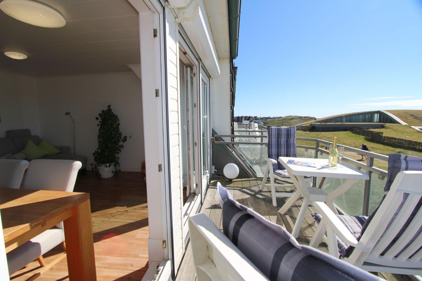 Genießen Sie auf dem West-Balkon den direkten Meerblick! Ob Sonne oder „Sylt-Wetter“, hier sind Sie dem Meer ganz nah.