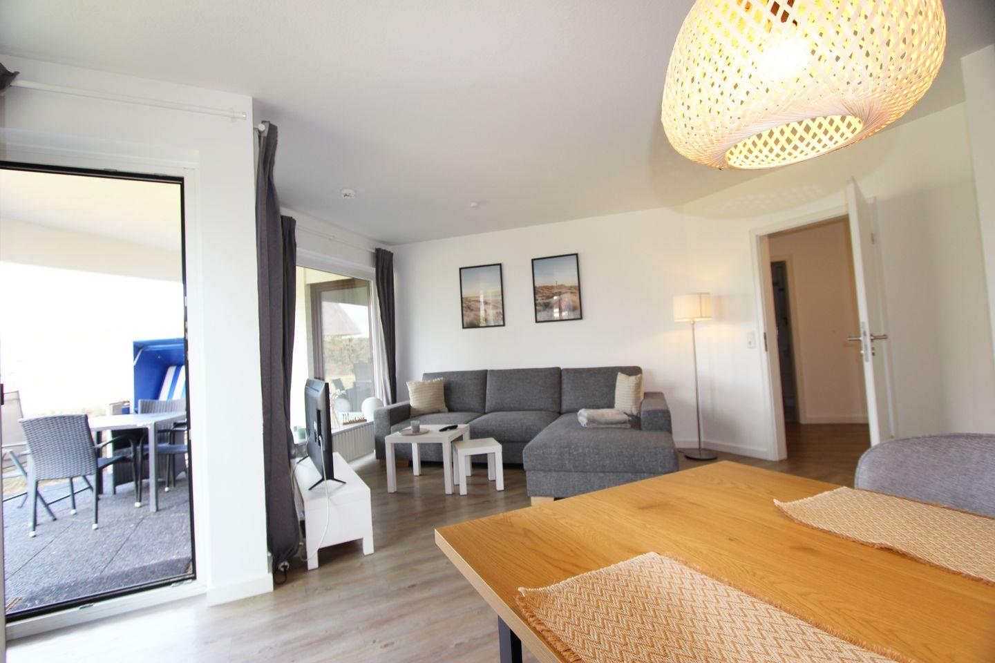 Moderne und individuell geschnittene Zwei-Zimmer-Wohnung im Erdgeschoss des „Schloss‘ am Meer“. Genießen Sie das Rauschen des Meeres im eigenen Strandkorb – Erholung pur!