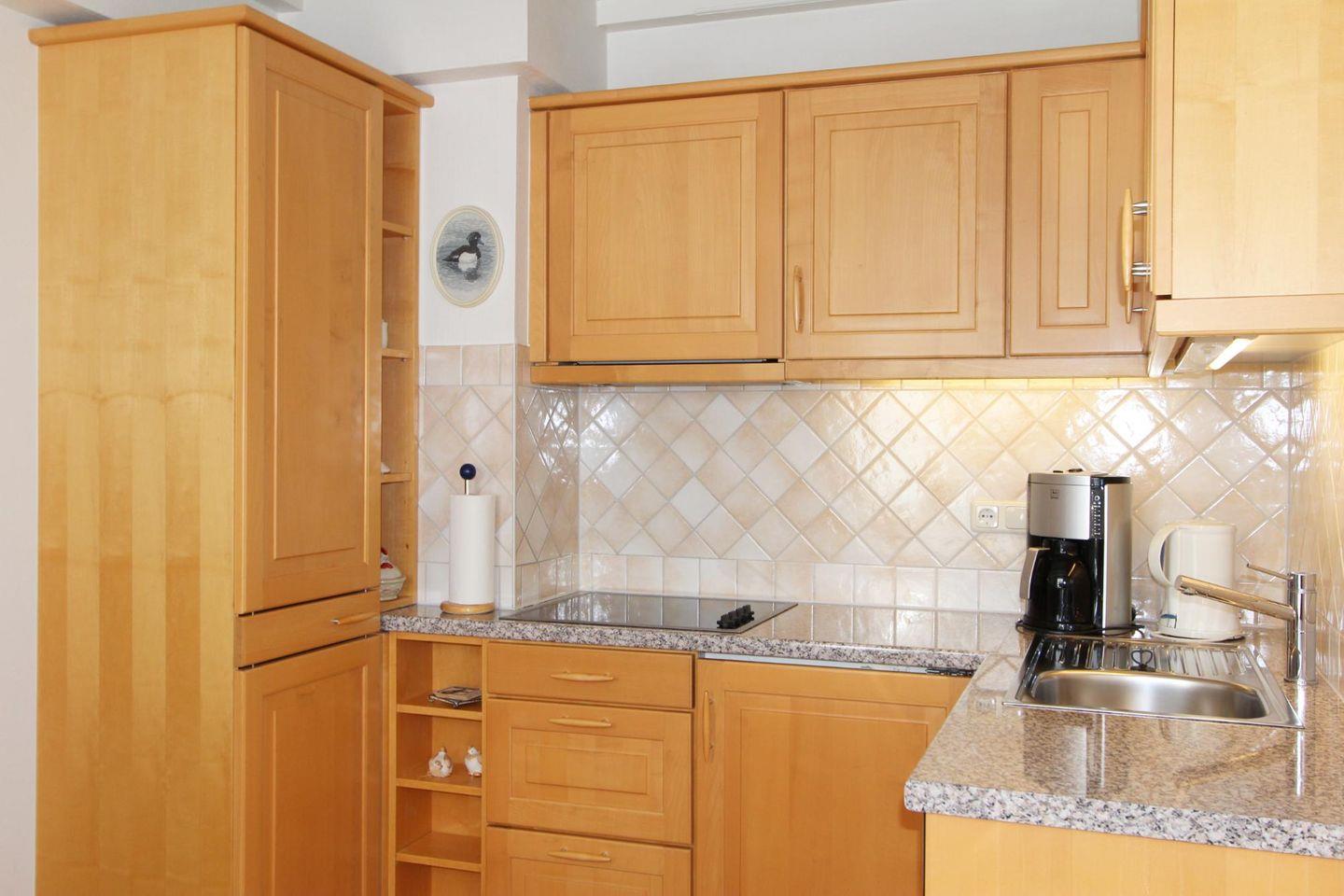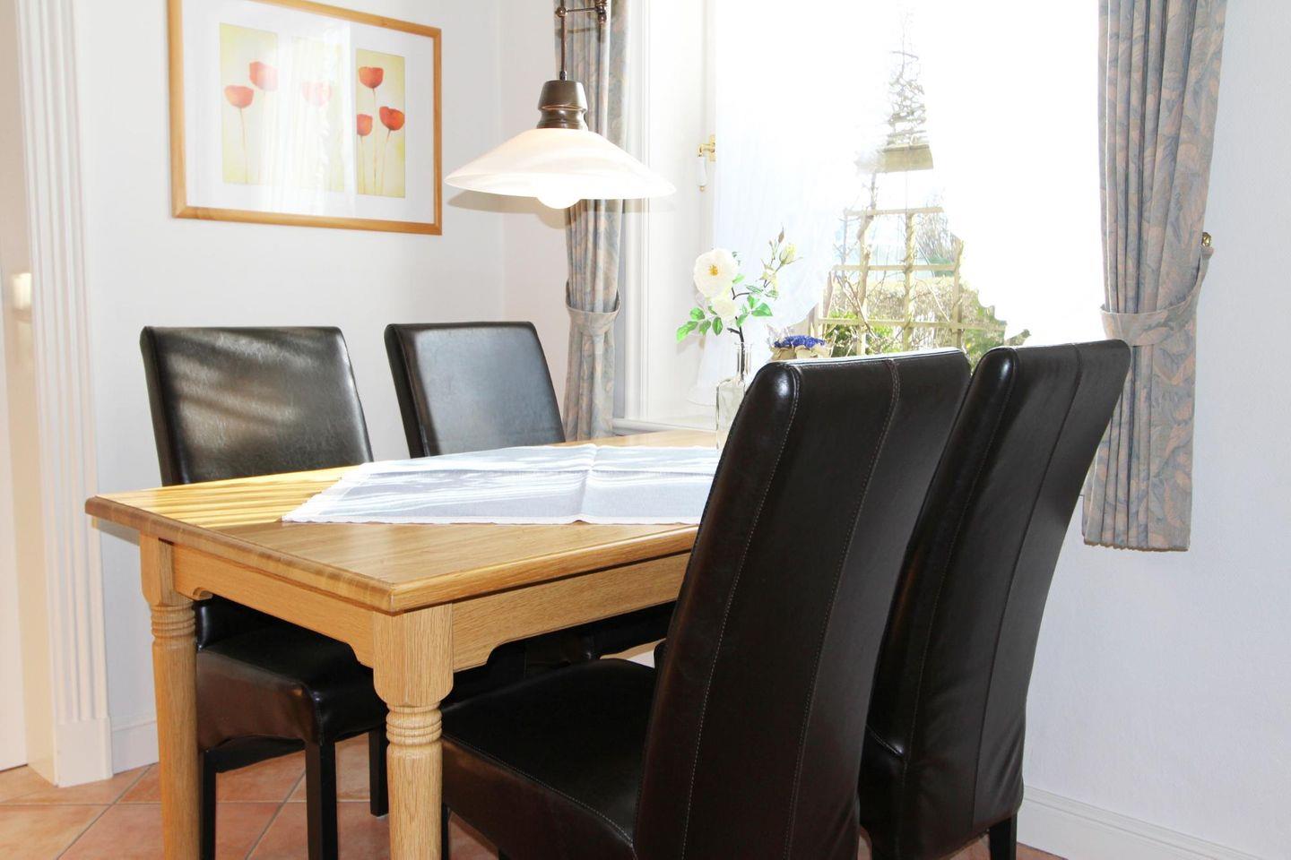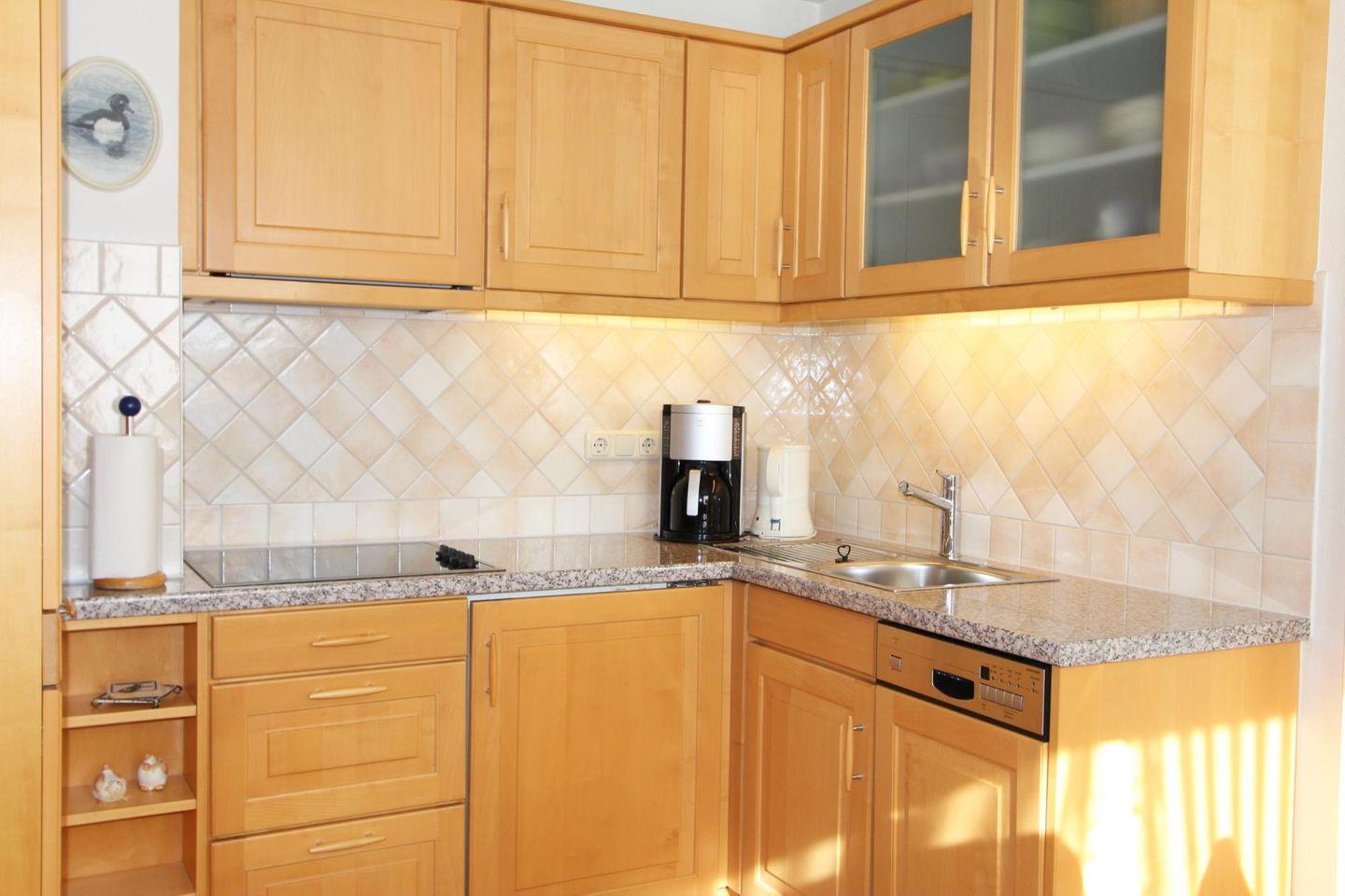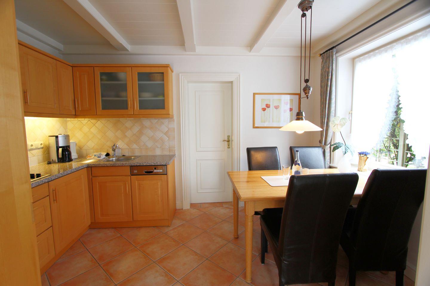 In der separaten, gut ausgestatteten Küche können Sie nach Herzenslust kochen und am angrenzenden Essensplatz gemütliche Stunden verbringen.