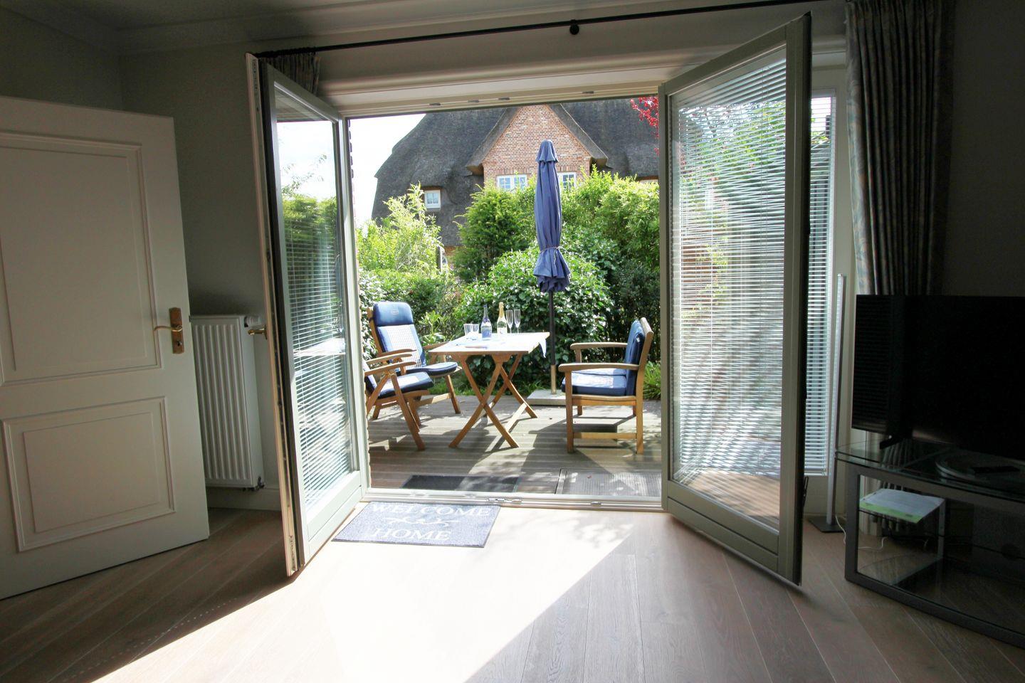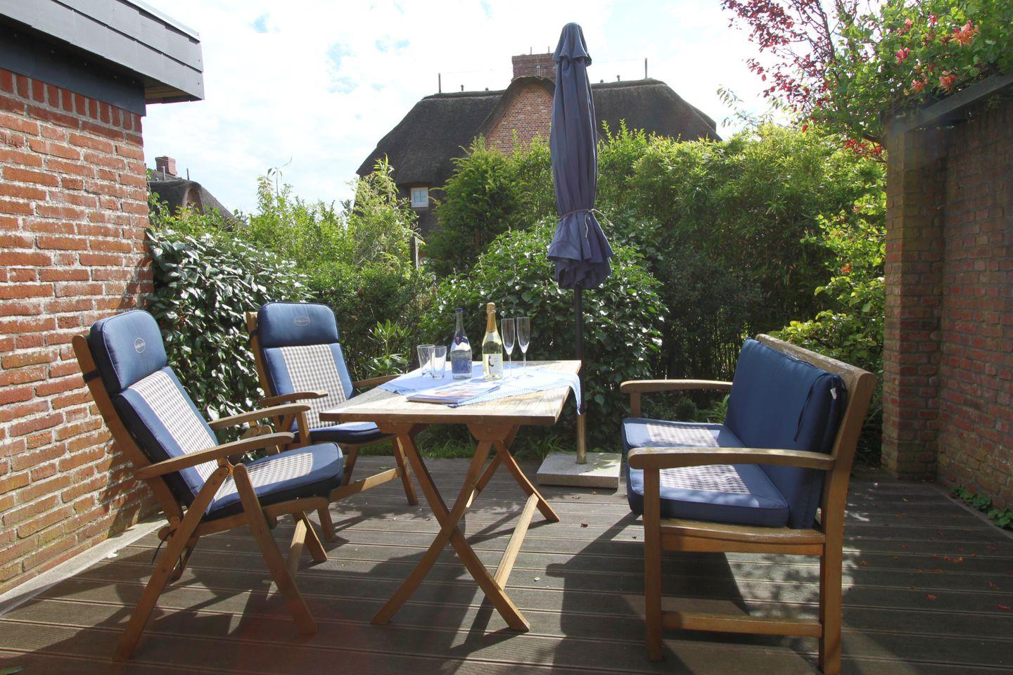 Auf der sonnigen Süd-Terrasse erleben Sie völlige Abgeschiedenheit und genießen bei frischer Nordseeluft die Sonne von Sylt.