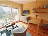 Der Schlafraum befindet sich im Untergeschoss und bietet ein komfortables Doppelbett. Ferner verfügt es über einen kleinen Arbeitsplatz. Die Wendeltreppe ins Untergeschoss ist sehr eng!