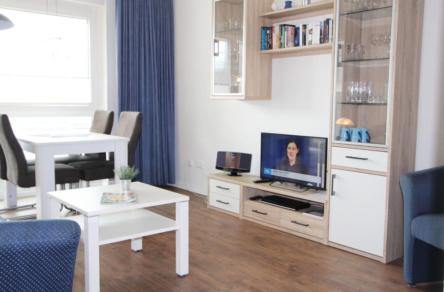 Im stilvoll eingerichteten Wohnbereich der Ferienwohnung im Obergeschoss können Sie entspannen und sich von den Sorgen des Alltags erholen.