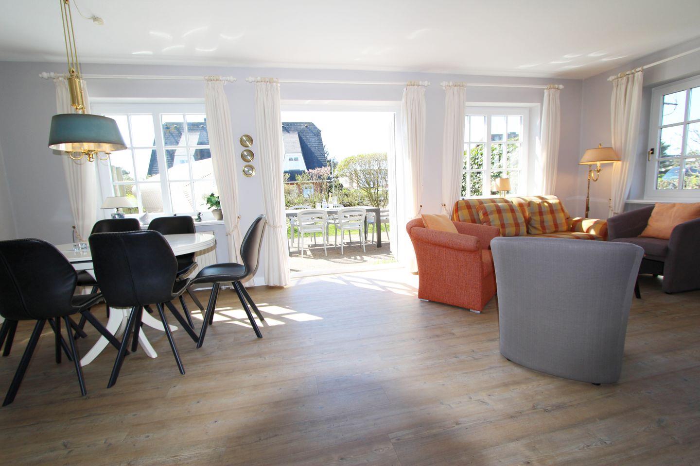 Lassen Sie auf der Süd-Terrasse den ganzen Tag von der Sonne verwöhnen, ob in den gemütlichen Terrassenmöbeln oder im Strandkorb. Die Terrasse ist stilvoll durch einen Friesenwall mit Heckenrosen eingezäunt und eingewachsen. Sie genießen Zeit nur für sich!