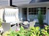 Die idyllische, teilweise überdachte Terrasse mit Südausrichtung bietet den optimalen Erholungsfaktor. Entspannen Sie im eigenen Strandkorb (April bis Oktober) und den geschmackvollen Gartenmöbeln in der Sylter Sonne.