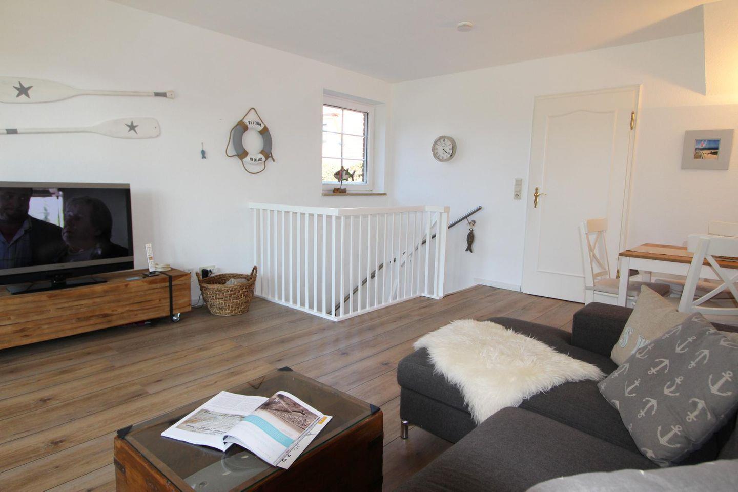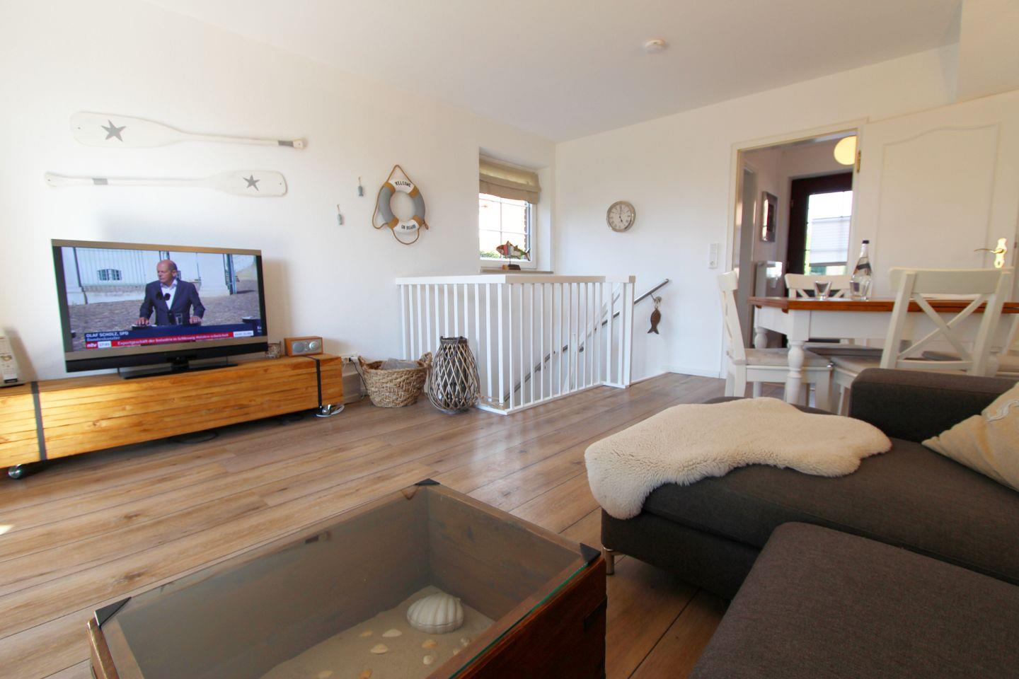 Im Wohnbereich im Erdgeschoss steht Ihnen eine bequeme Sofagarnitur zur Verfügung, auf der Sie sich ausgiebig entspannen können.