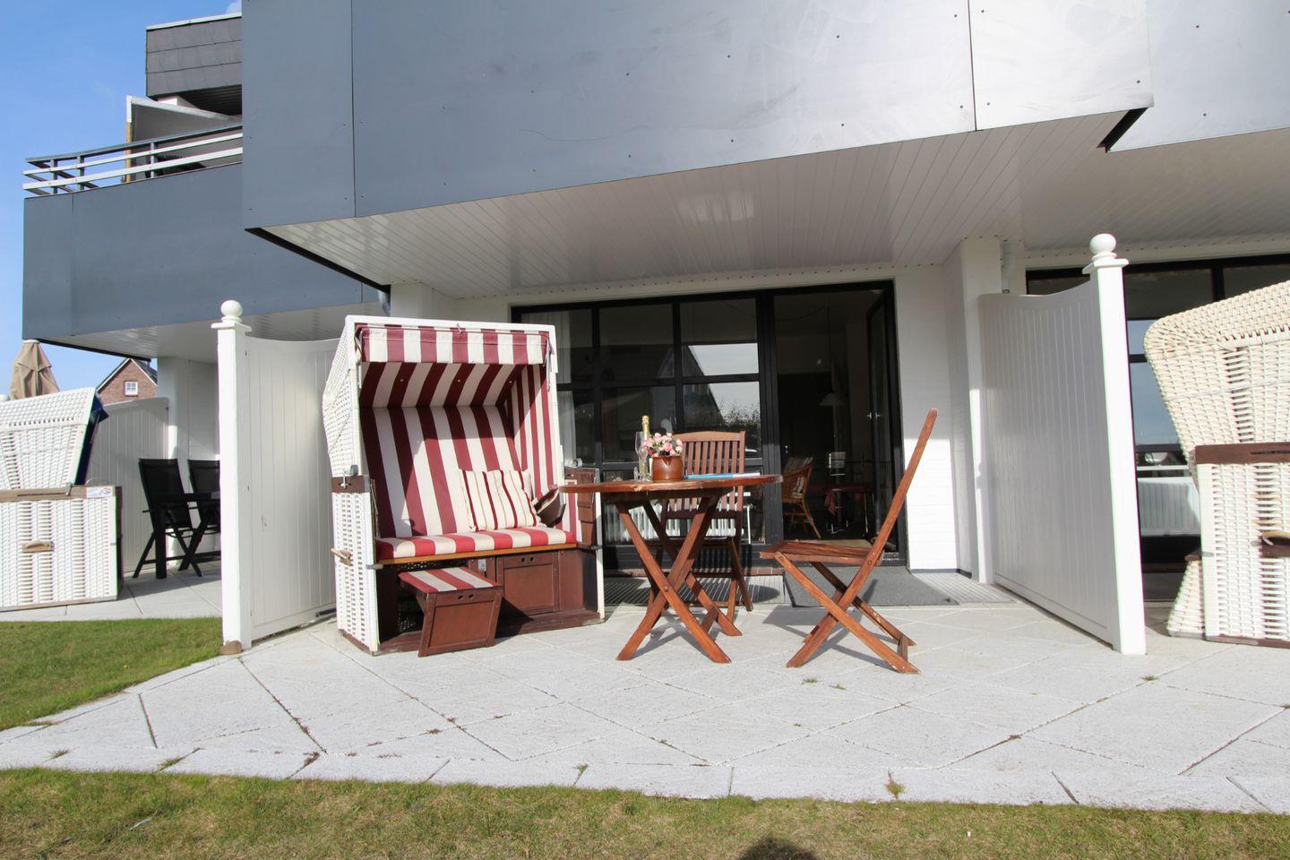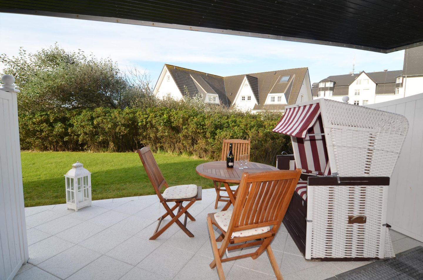 Besonders schön ist die teilüberdachte Süd-Terrasse mit eigenem Strandkorb (April bis Oktober). Genießen Sie die frische Sylter Nordseeluft und vergessen Sie die Sorgen des Alltags.
