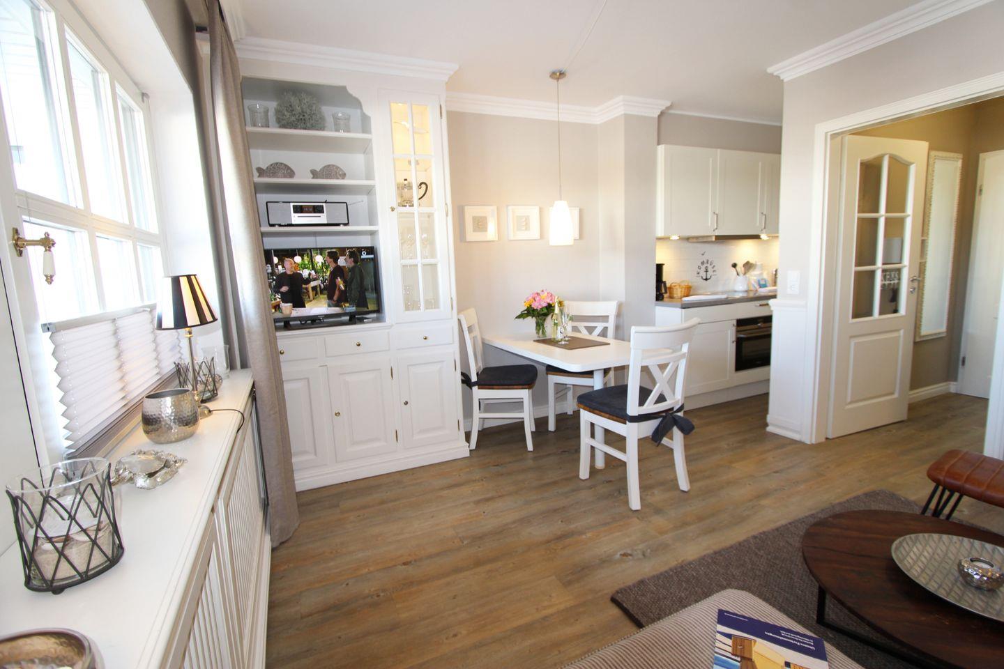 Das Appartement „Sanddornkoje“ hält, was der Name verspricht: Einen gemütlichen Rückzugsort mit nordischem Ambiente. So genießen Sie im Wohnbereich den Komfort eines großen Sofas, welches in einen perfekt abgestimmten Wohnbereich gebettet ist.