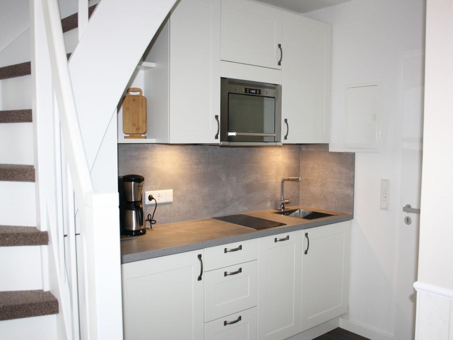 Die moderne Küchenzeile bietet Platz, um auch mal zu zweit zu Kochen und ist für die Zubereitung der Leibspeise bestens ausgestattet. Am hellen Essensplatz direkt vor der großen Fensterfront kann gespeist werden.